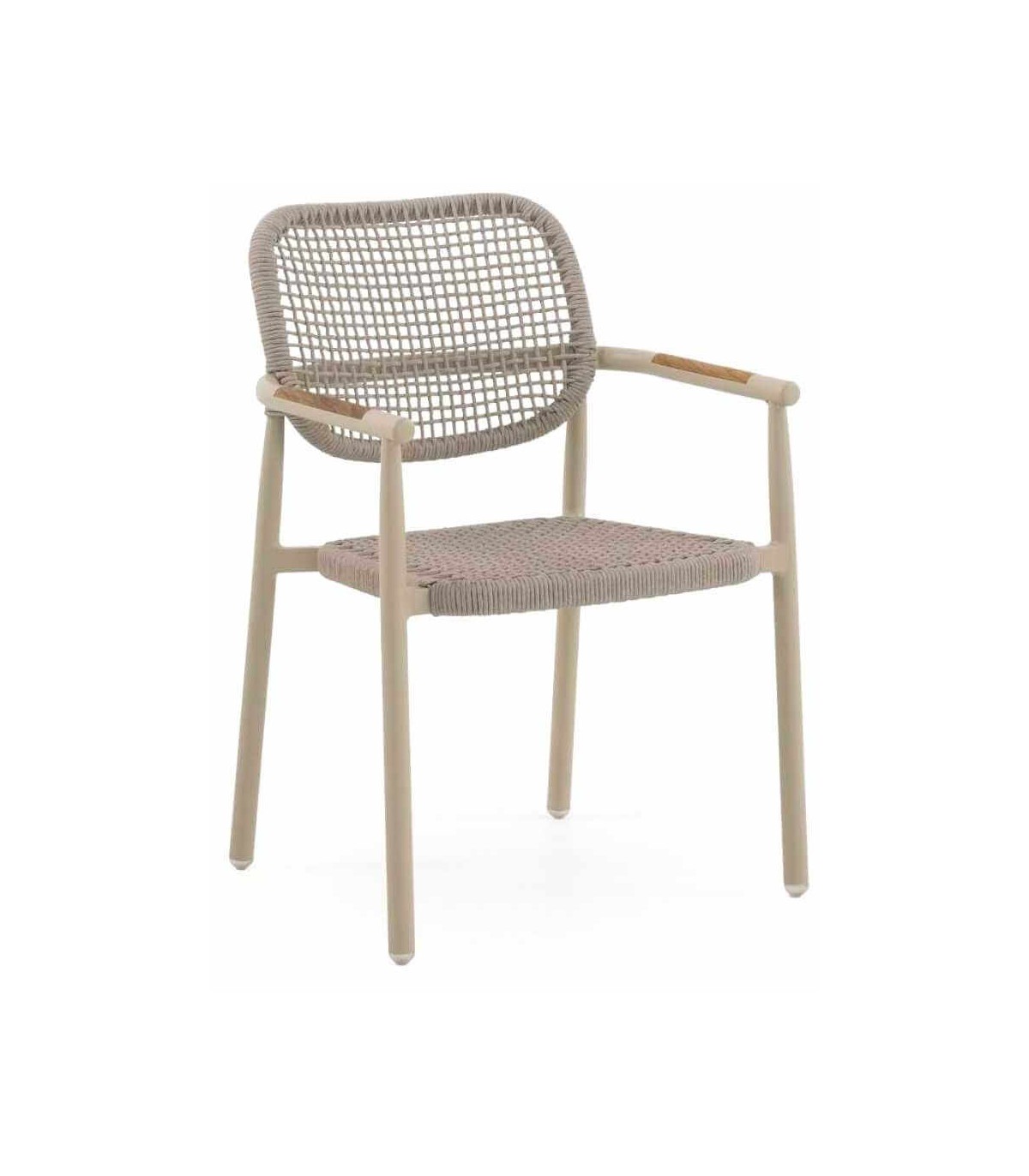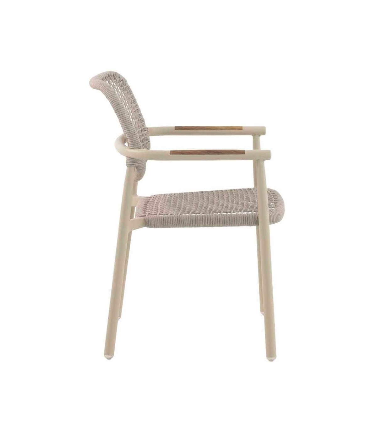Sillón de Comedor para Exterior en Aluminio Crema, Madera Natural y Cuerda Sintética Arena