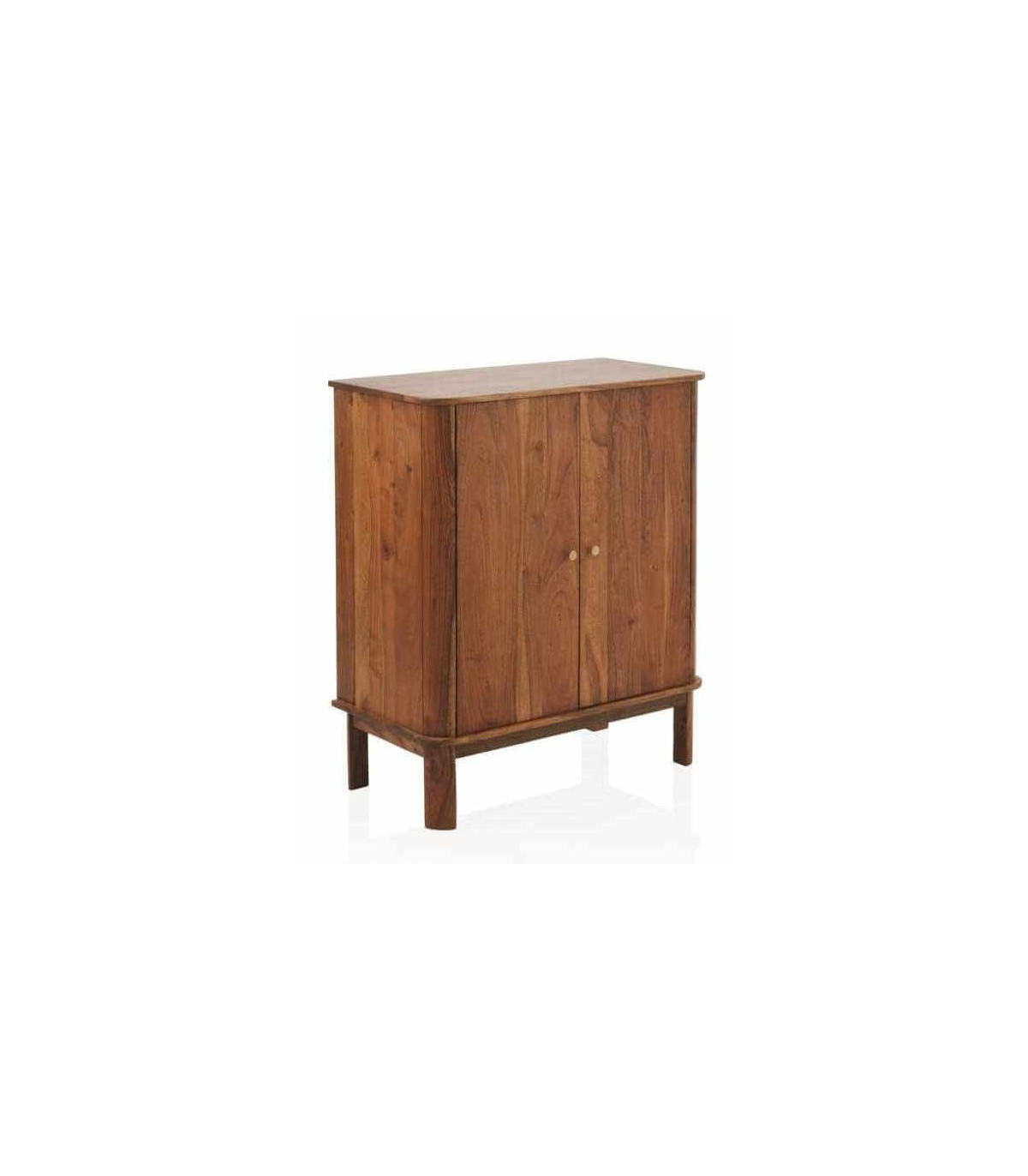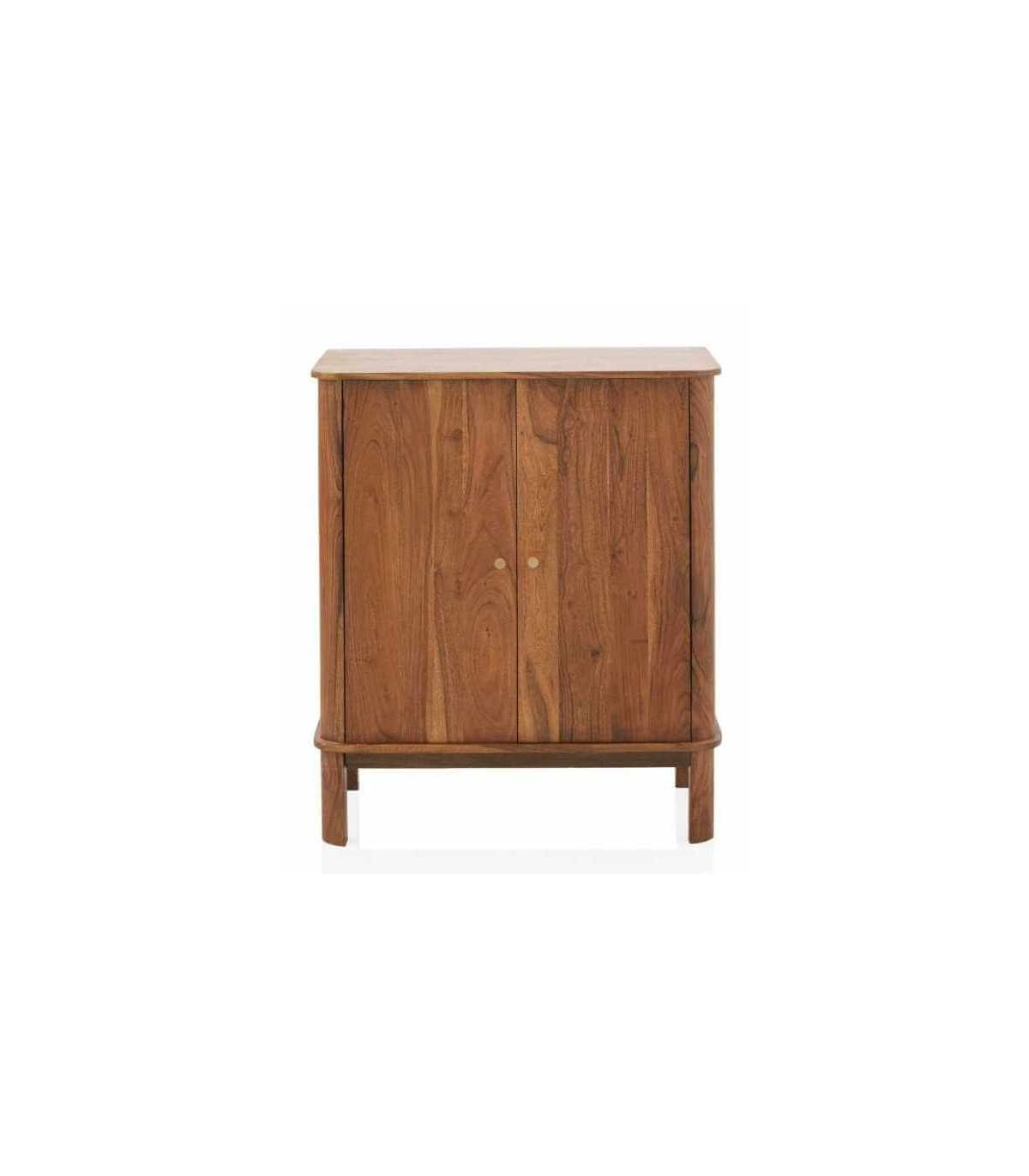 Taquillón con 2 puertas realizado en madera de acacia natural, con los tiradores en metal dorado. La madera de acacia, con sus tonalidades naturales y su distintivo grano, aporta un encanto cálido y auténtico a la cómoda, añade un elemento de estilo y elegancia a cualquier espacio.