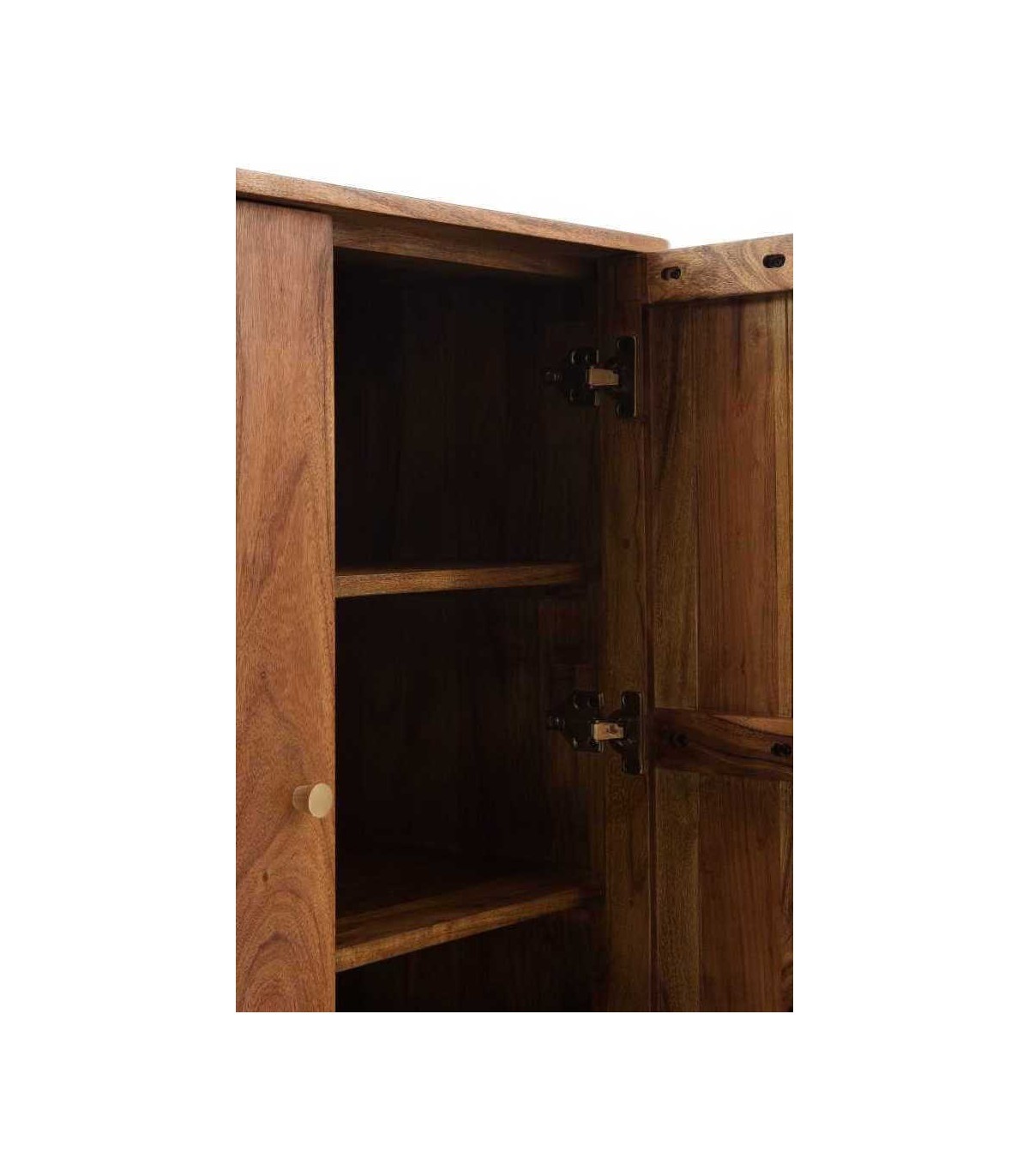 Acabado, madera de acacia natural, tiradores en metal dorado.