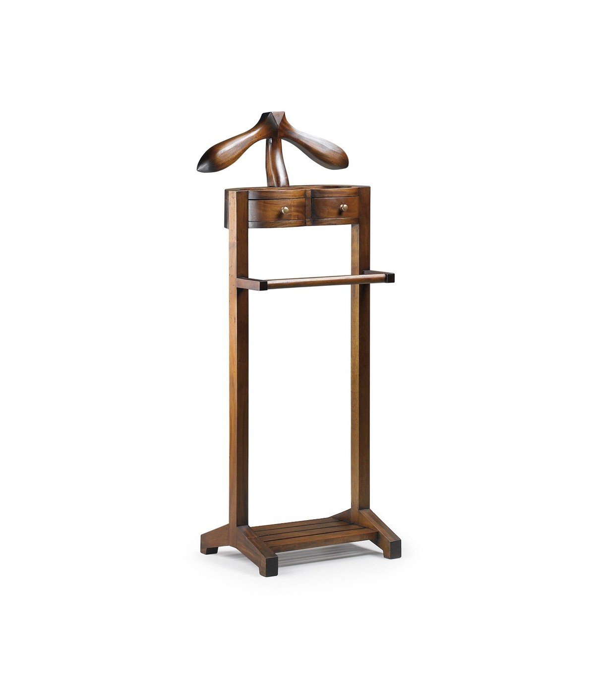 Bonito galán de noche realizado en madera maciza de caoba con dos cajones con sus tiradores en bronce, un galán de noche de calidad, práctico y elegante.