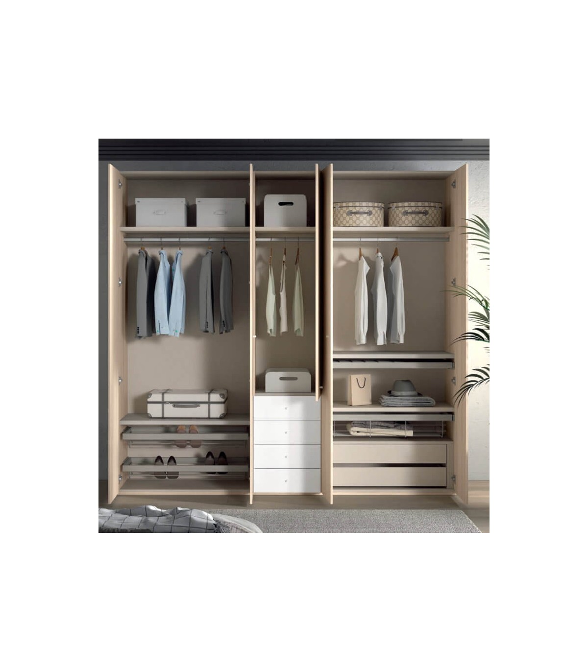 Armario ropero modular Emo, un dormitorio de calidad de fabricación nacional con la posibilidad de una amplia modulación y distintos acabados todos ellos combinables entres si, pásate por nuestra tienda física y te asesoraremos.