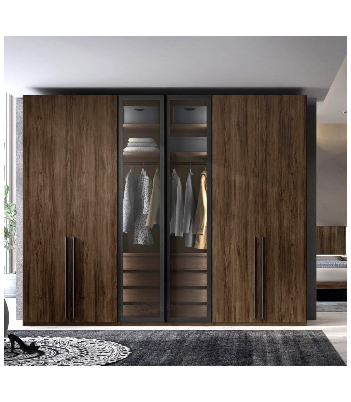 - A elegir entre una multitud de opciones, puertas batientes, correderas, de fulles, con una modulación muy amplia en alturas y largos y 10 acabados combinables entre si en toda la colección.