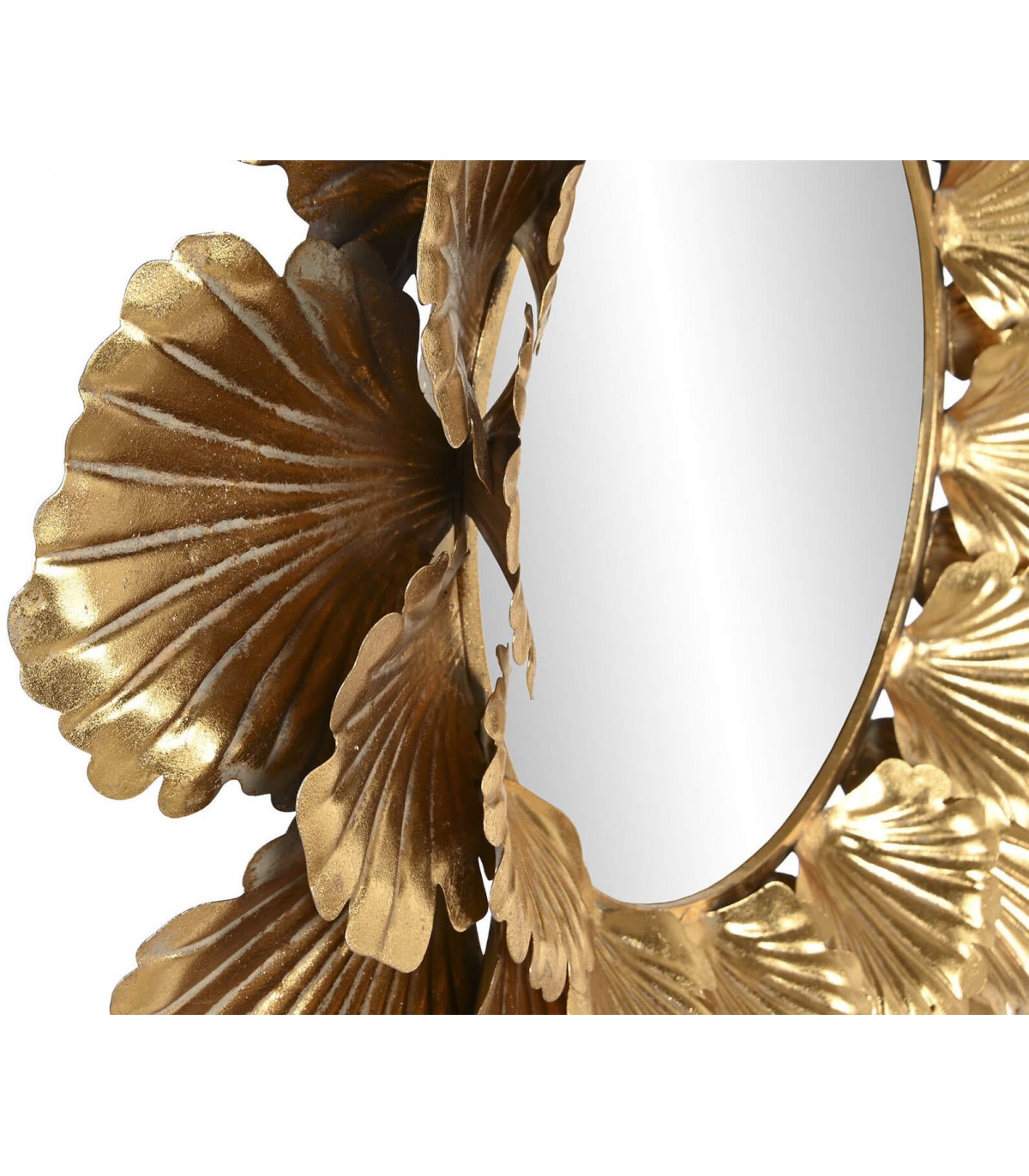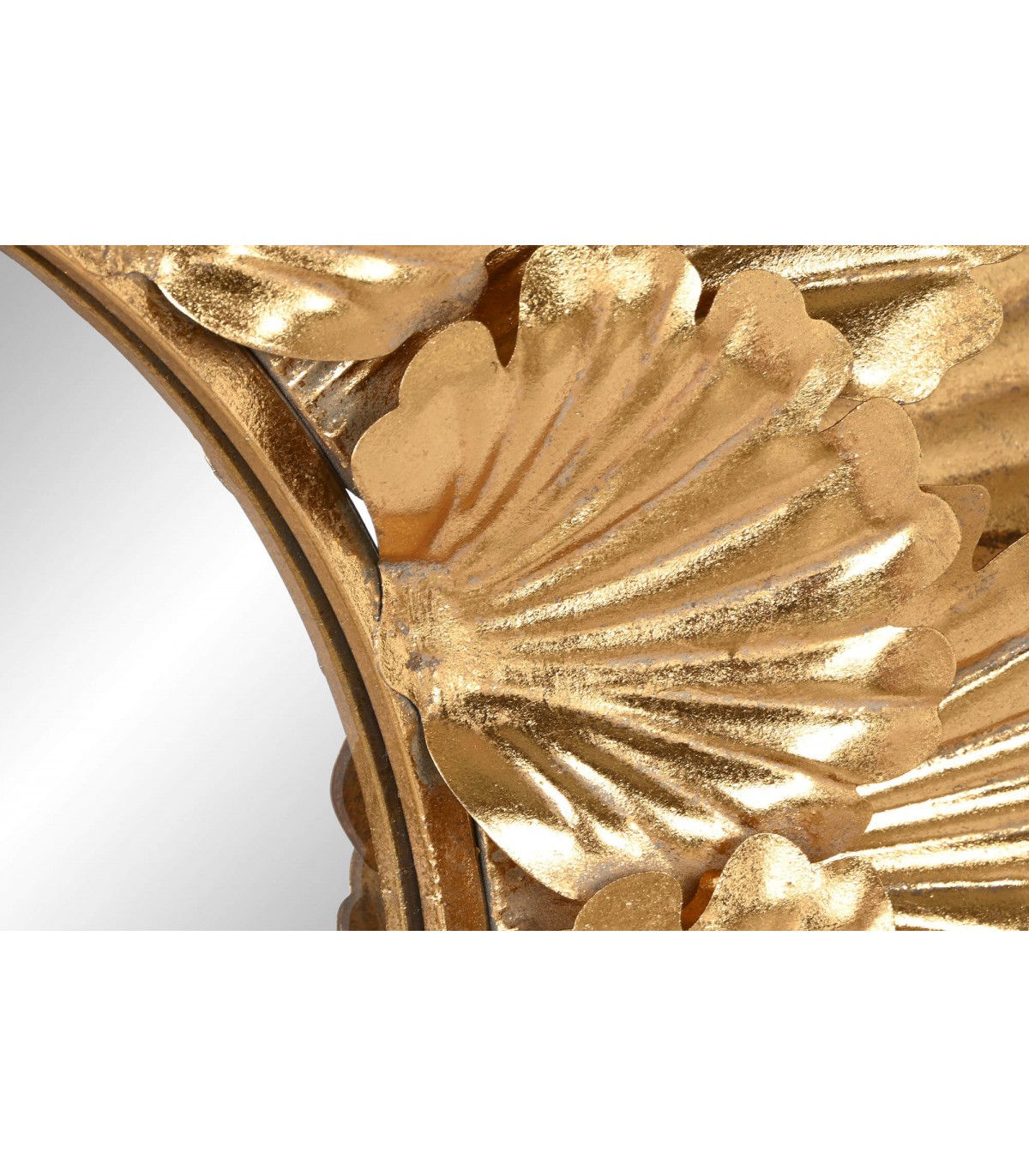 Espejo decorativo de pared con marco motivo de hojas acabado dorado. un espejo muy elegante de estilo art decó, perfecto para encima de muebles de tamaño medio, grande.