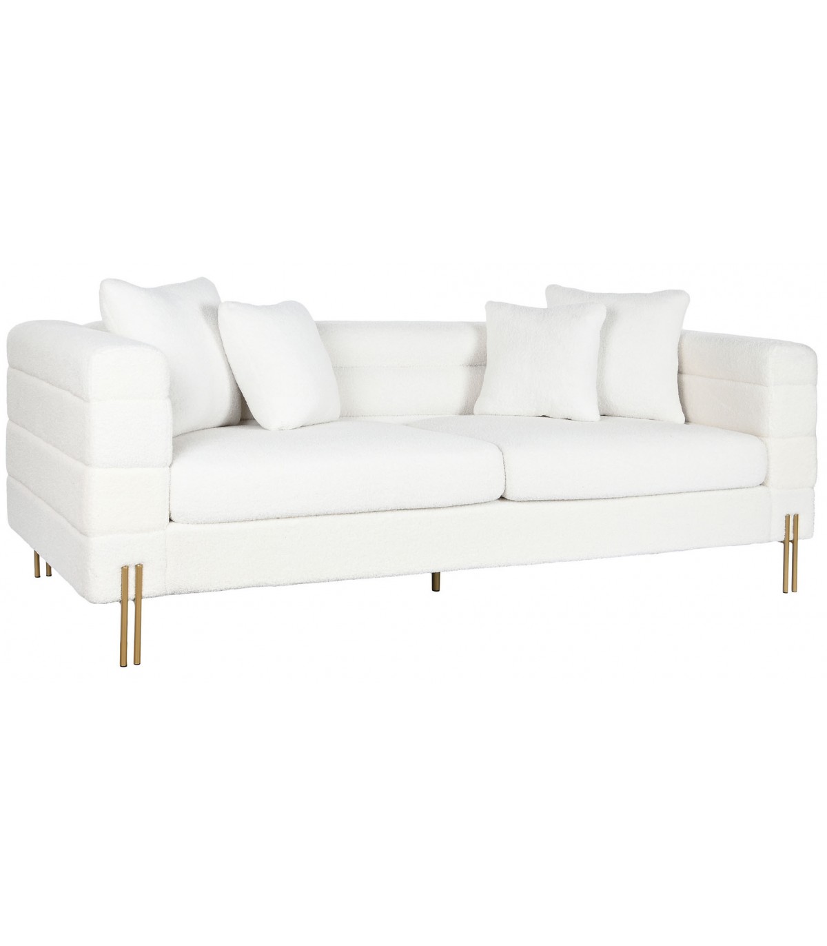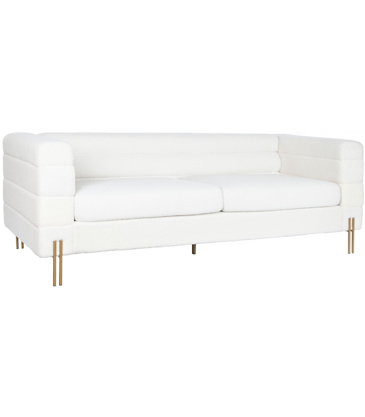 SOFA 3 PLAZAS 205 X 85 BARCO BOUCLE BLANCO METAL DORADO