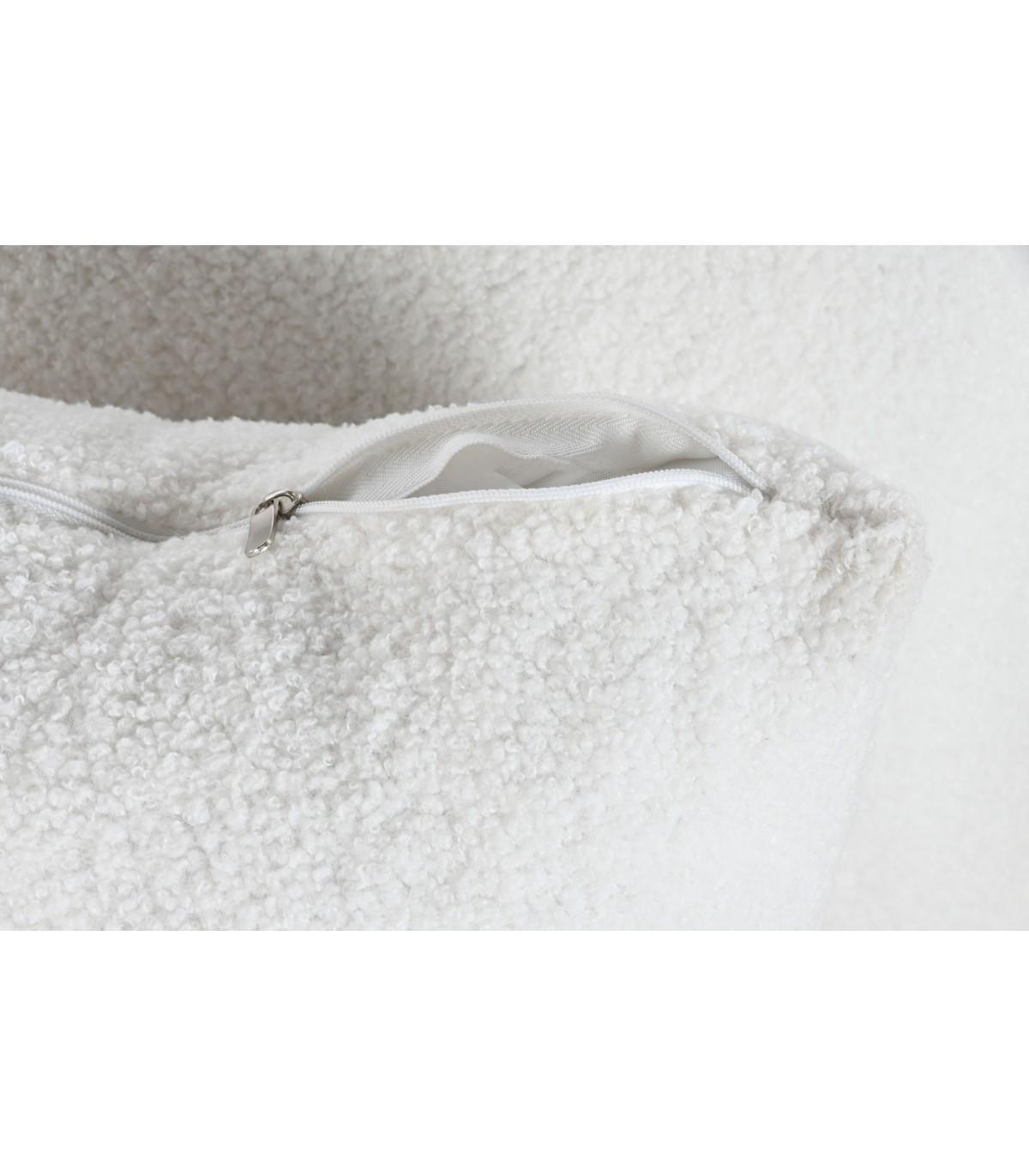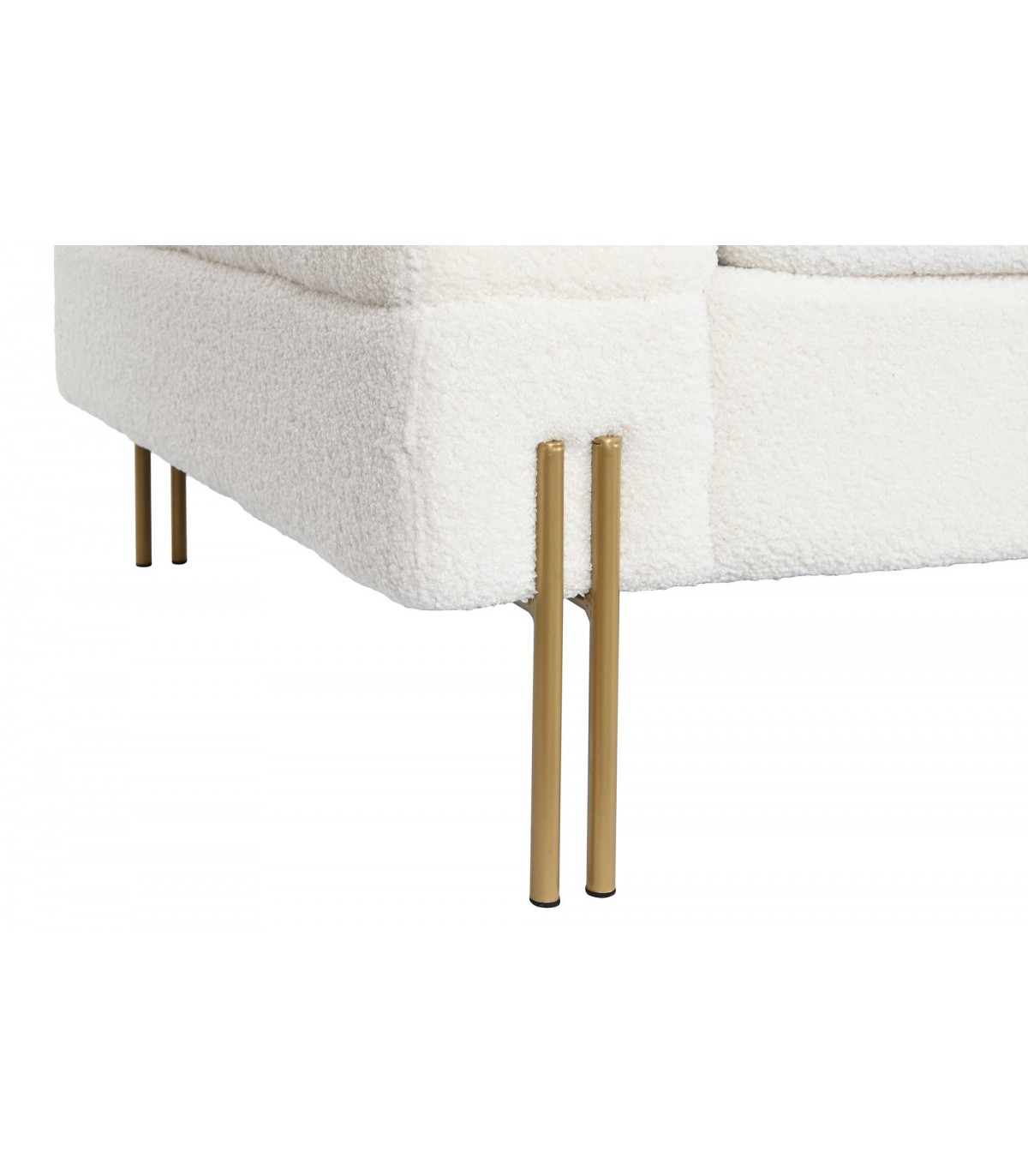 • Acabado, patas en metal dorado, tela bouclé color blanco.