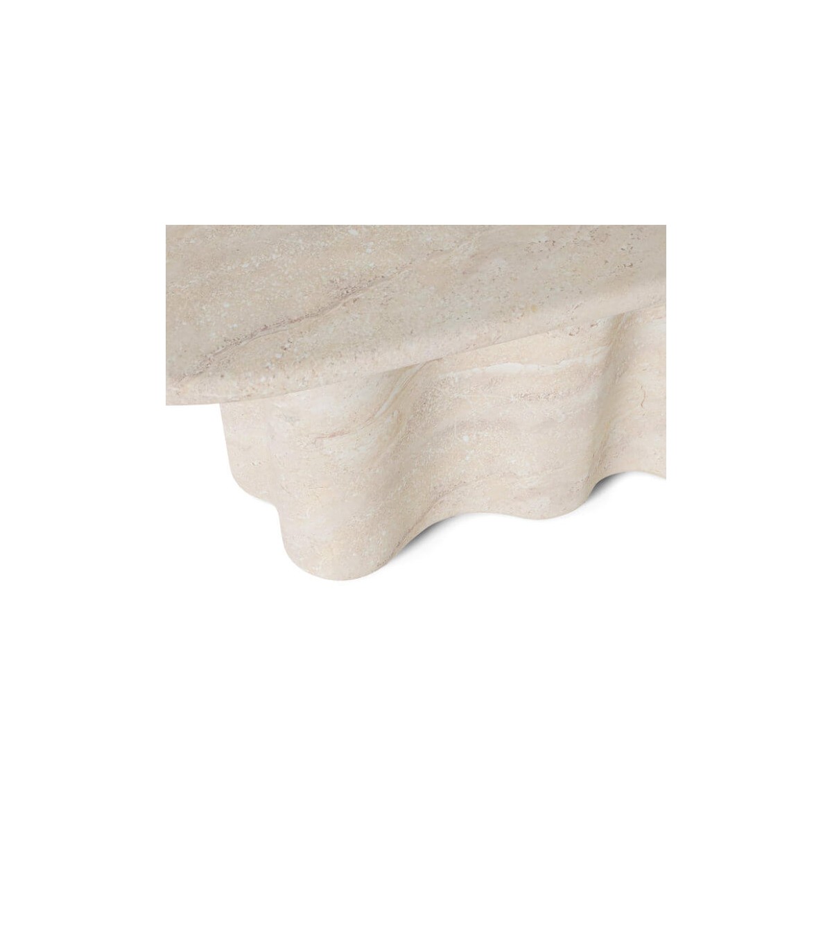 Su base ondulada aporta carácter y dinamismo, equilibrando la robustez del material con una estética ligera. Perfecta para ambientes modernos o mediterráneos, combina funcionalidad y belleza atemporal. Una pieza protagonista que eleva cualquier espacio con su diseño sobrio, táctil y orgánico.