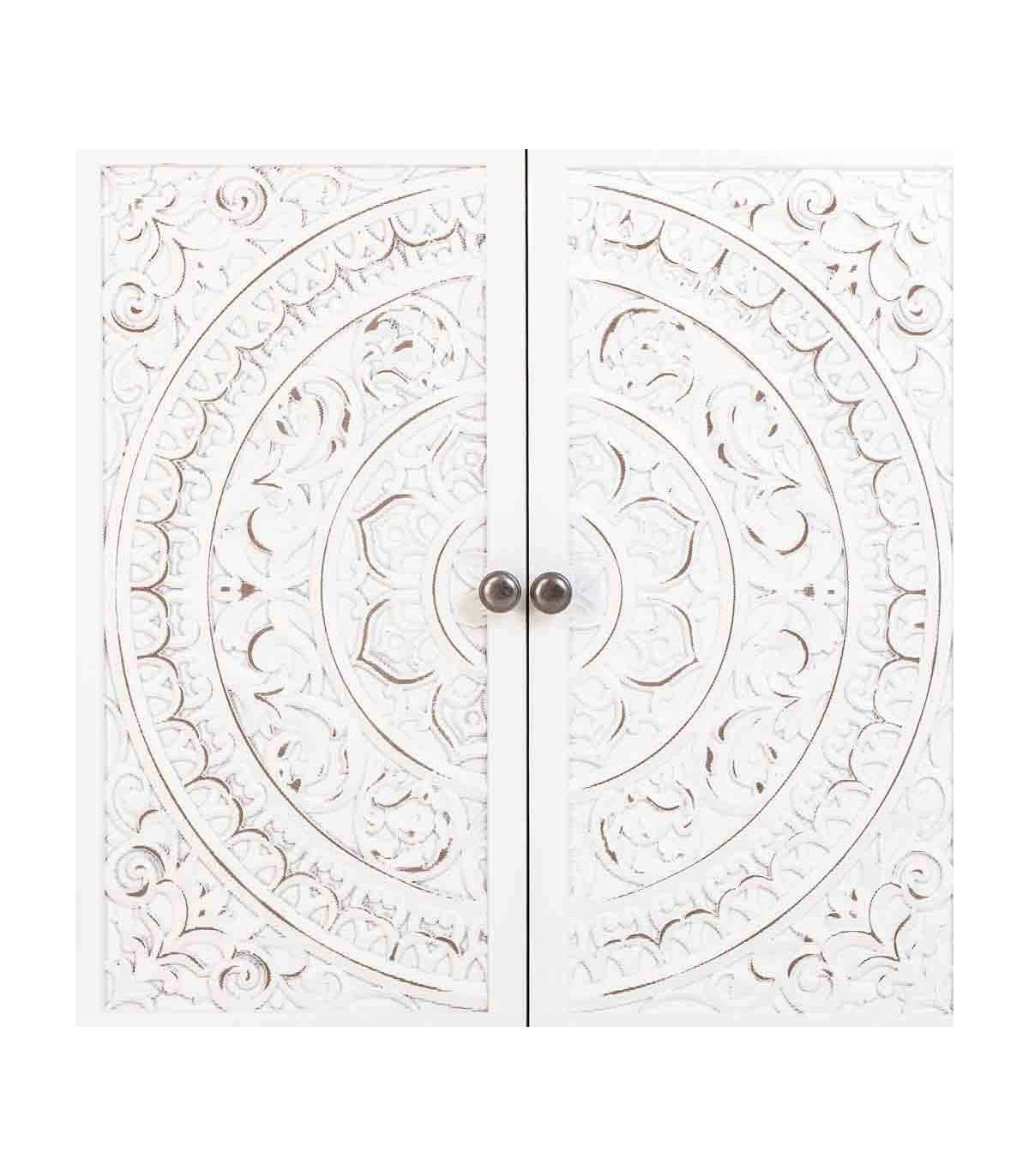 🌼 Aparador Pequeño Lacado en Blanco con Puertas Talladas – Estilo Mandala Único ✨