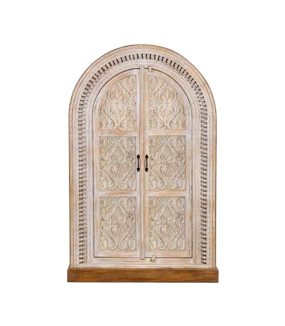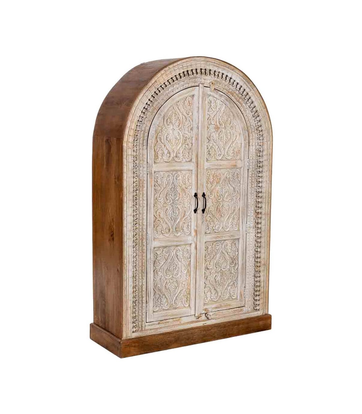 🕌 Armario Alacena Madera Tallada Blanco y Nogal – Estilo Étnico ✨