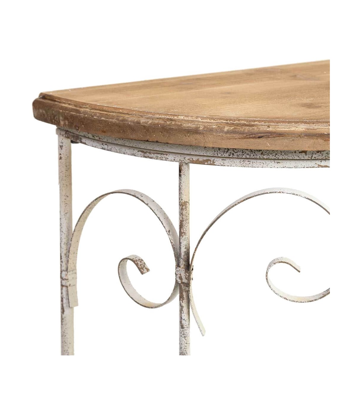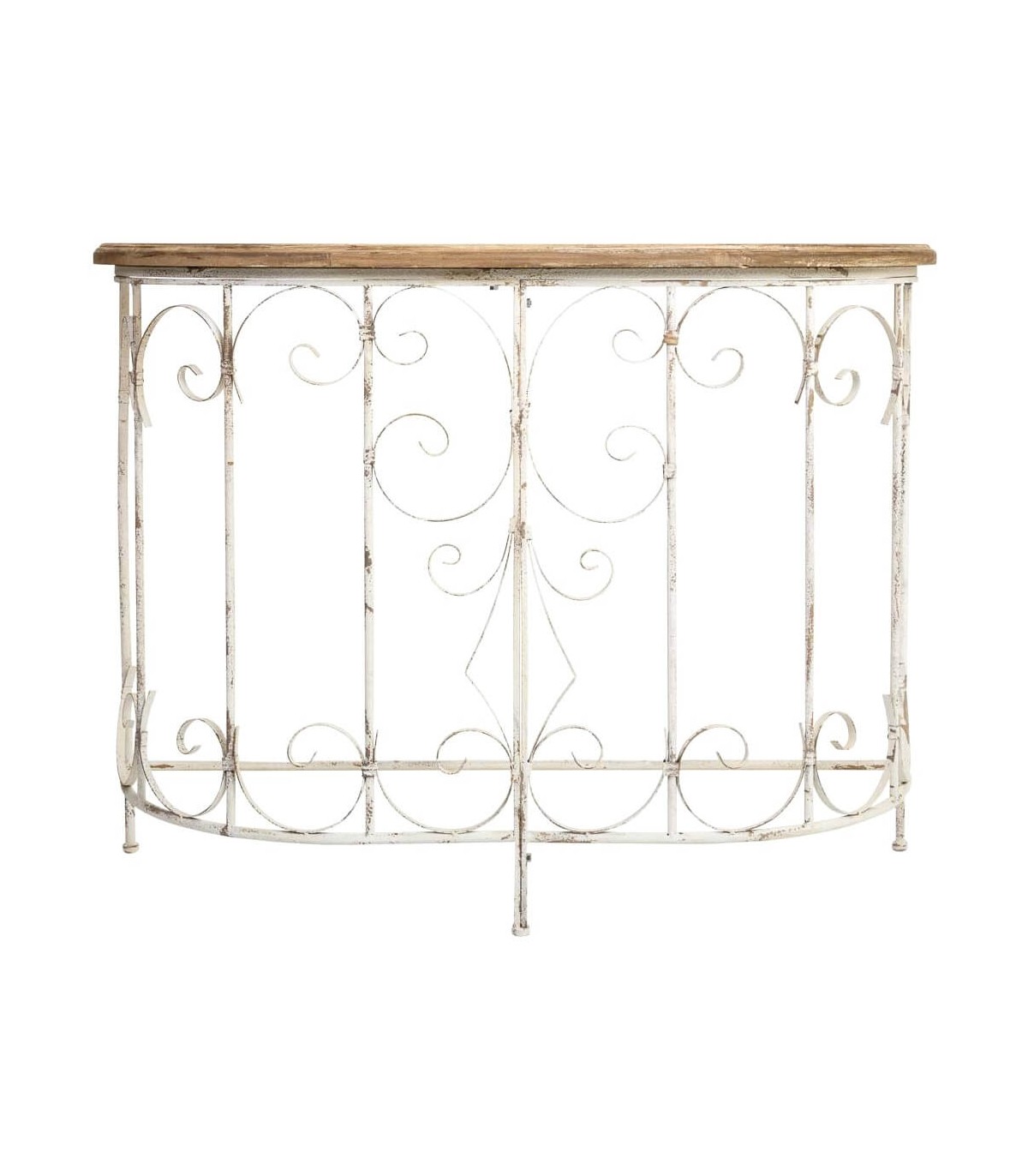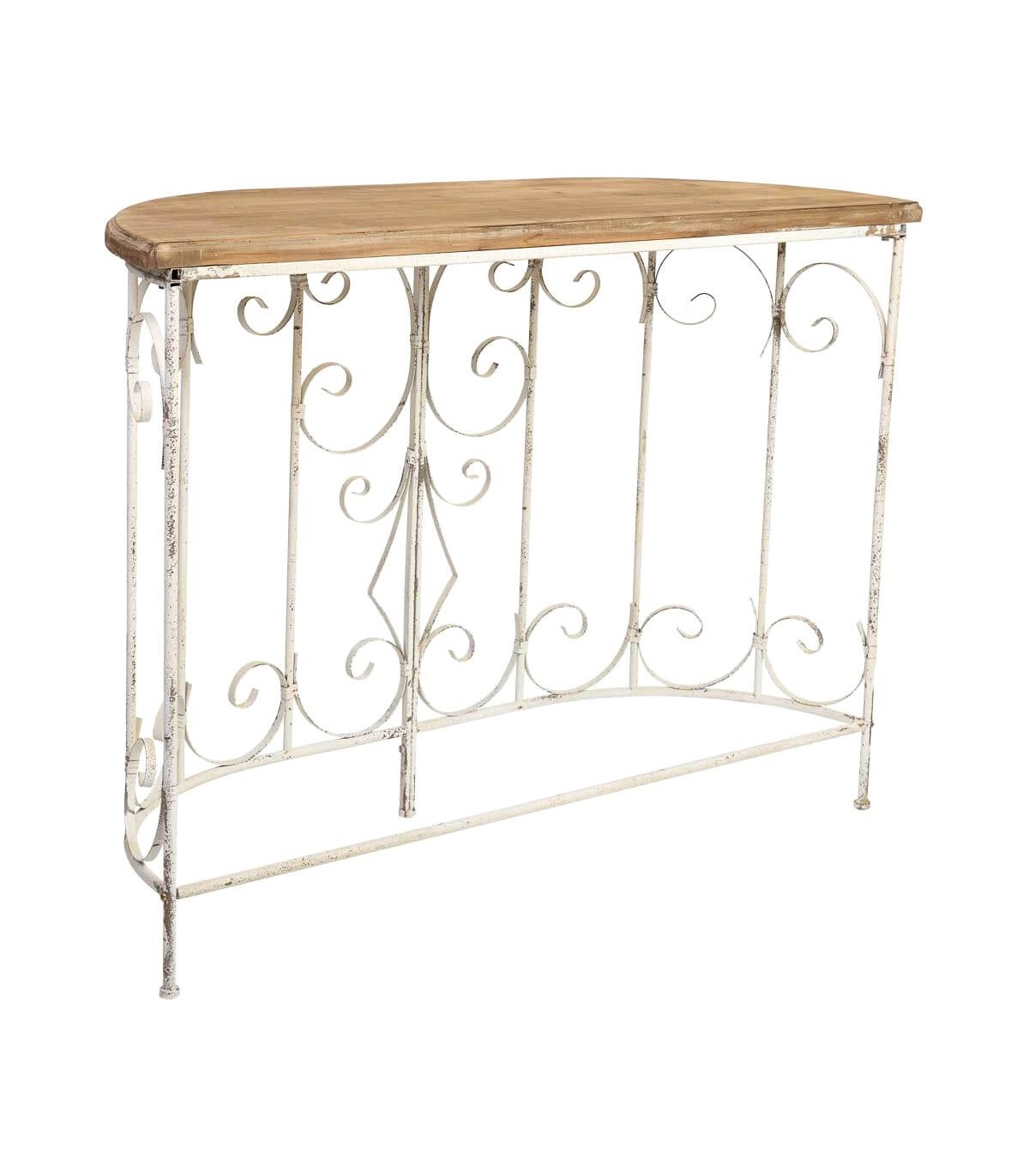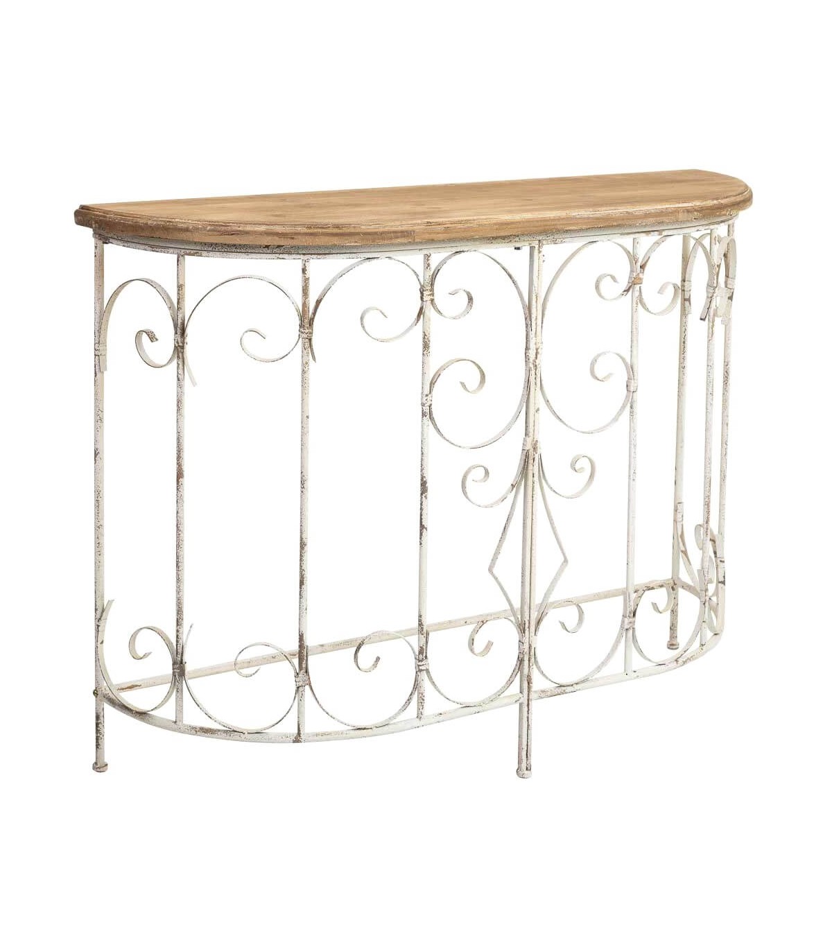 Consola de Entrada de Estilo Romántico – Hierro Forjado Blanco y Tapa de Madera Natural