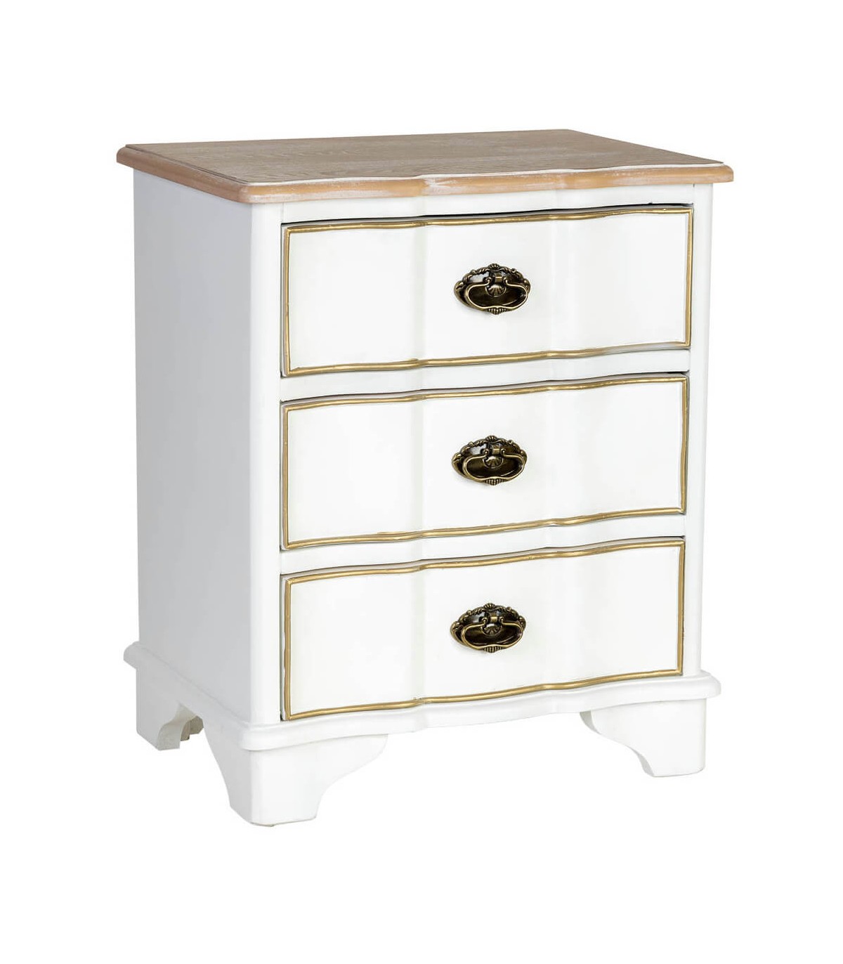 MESITA DE NOCHE 50 X 35 X 60 RUBER MADERA NATURAL Y BLANCO PERFILADA ORO
