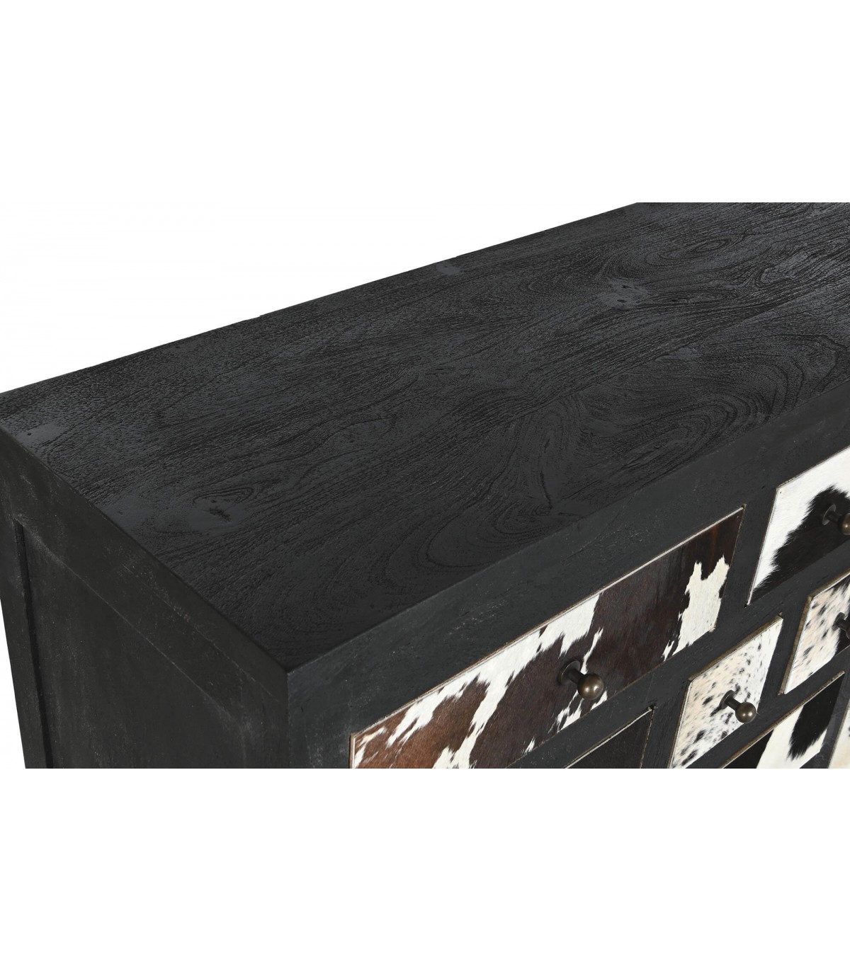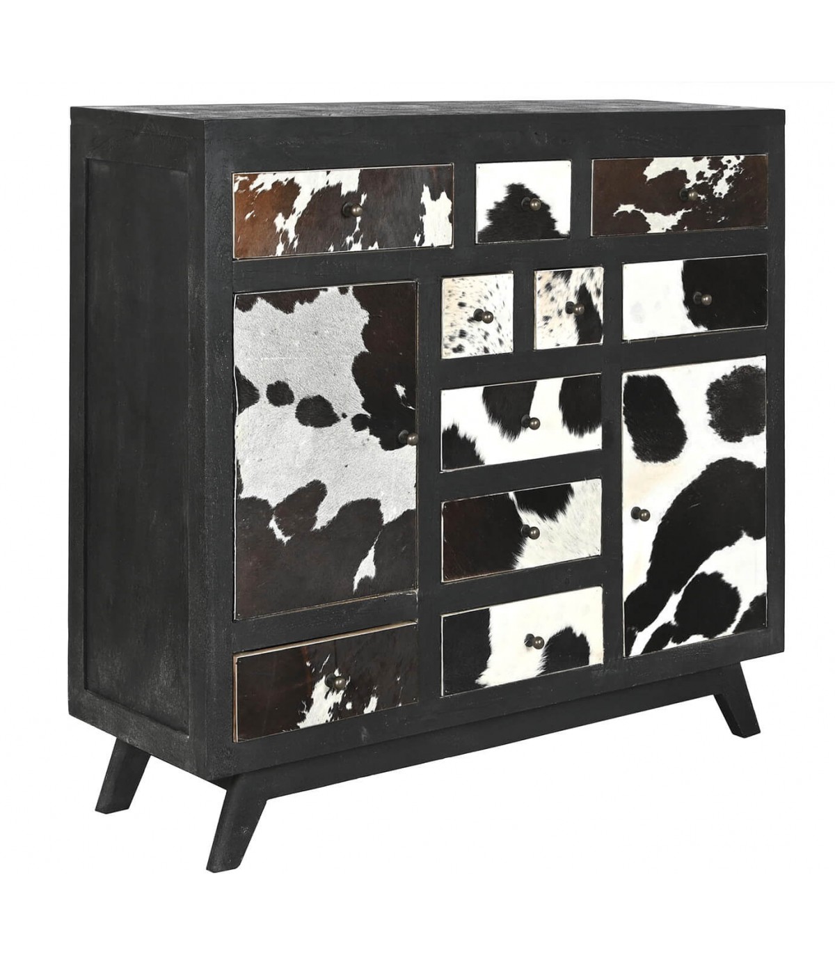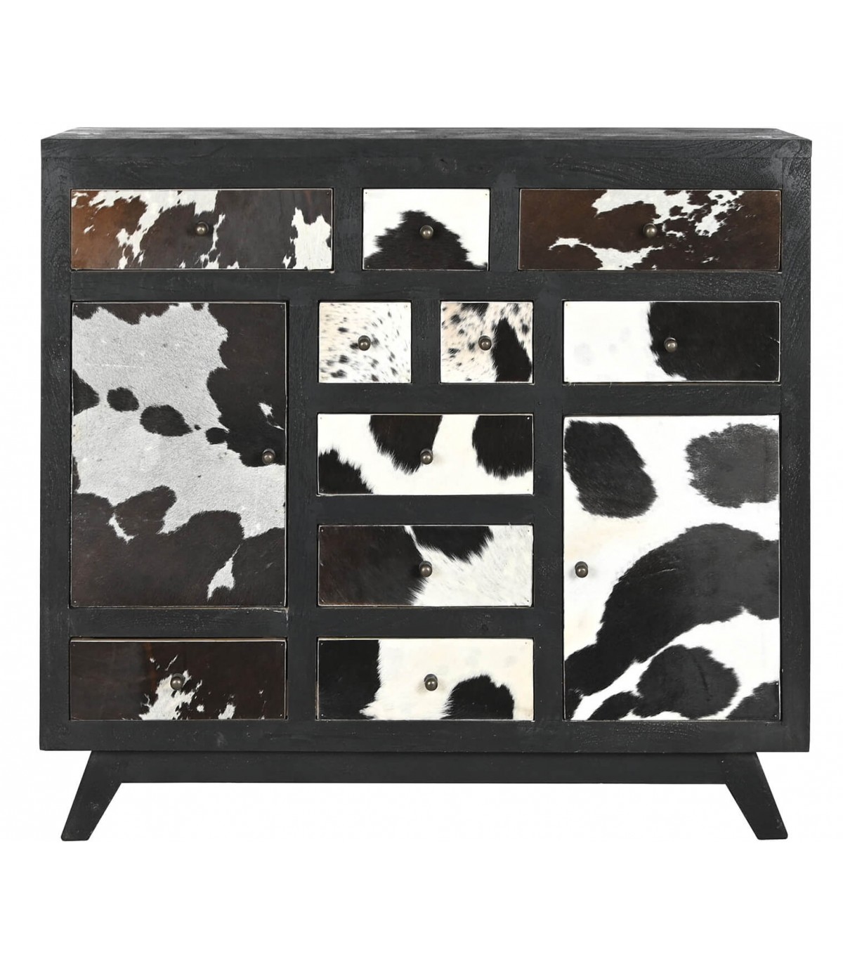 COMODA 115 X 36 X 102 PERSIBAL MADERA NEGRA PIEL DE VACA NATURAL