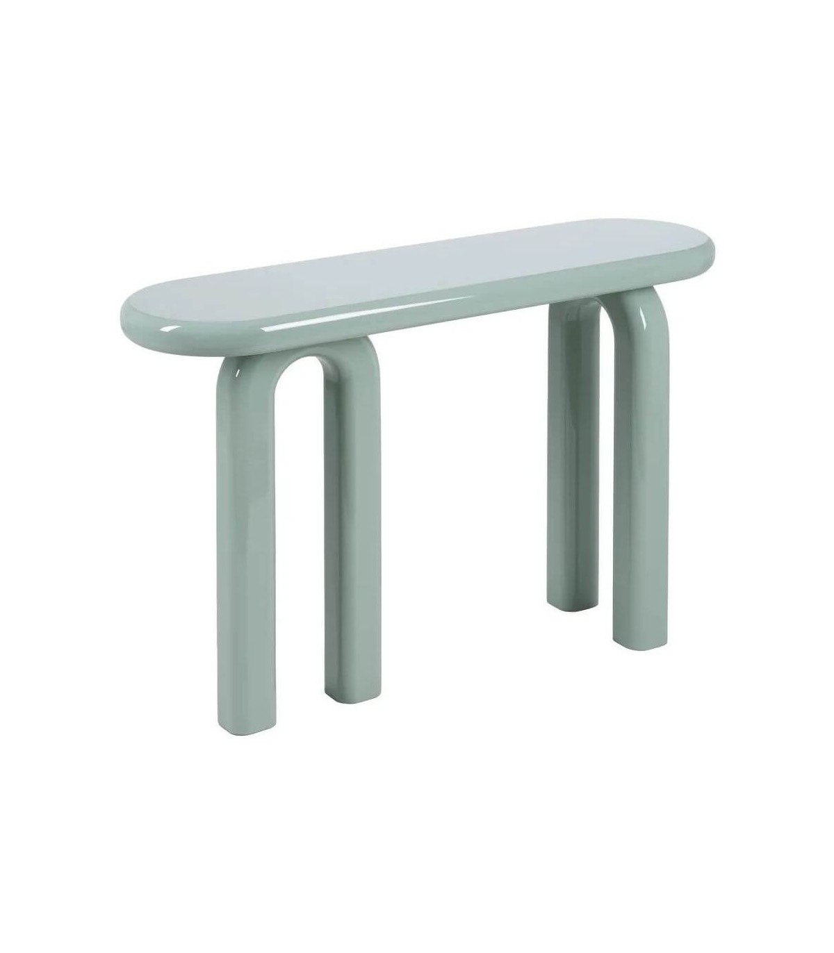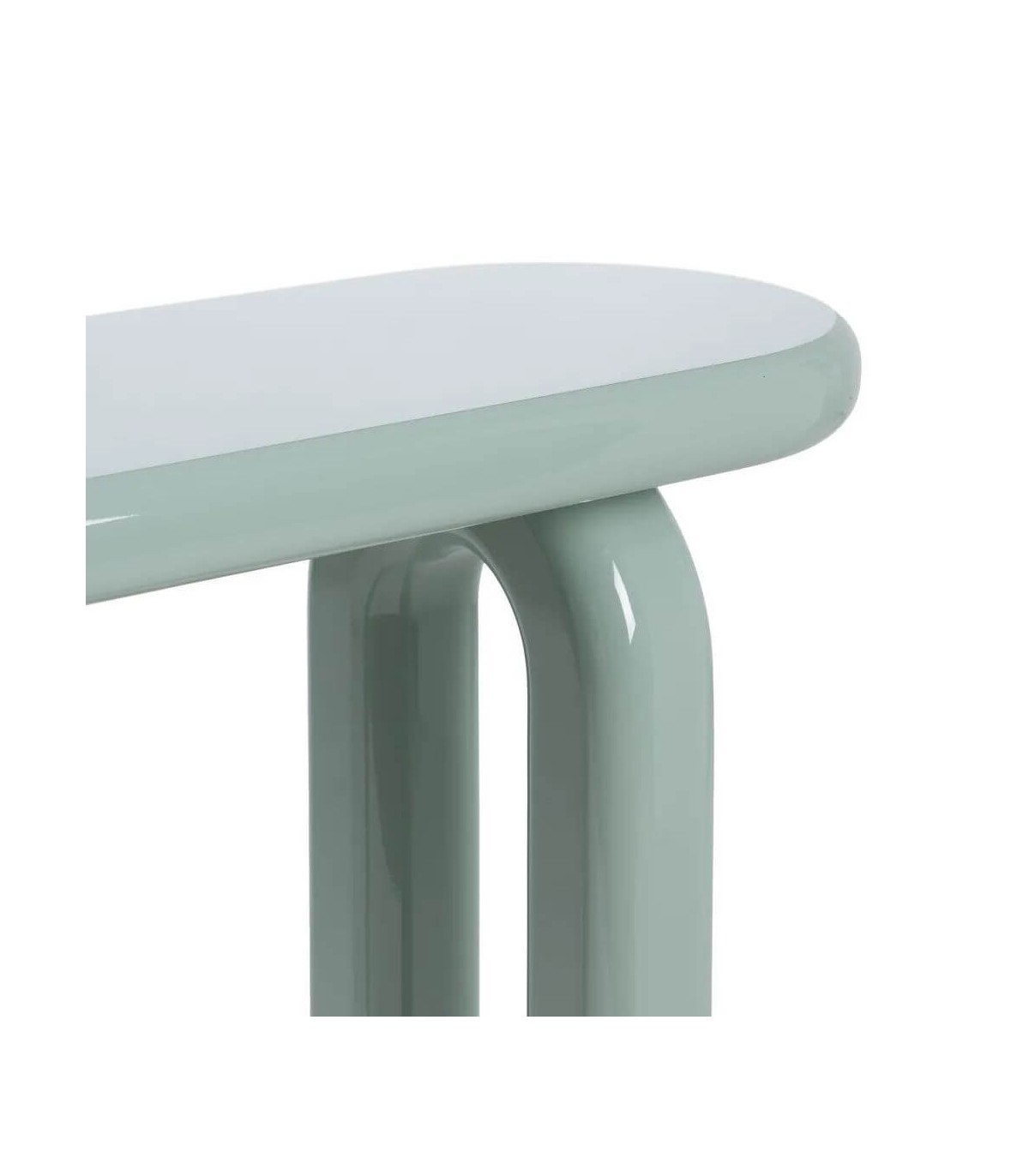 Atrévete con un diseño original y lleno de personalidad con esta consola de entrada de líneas redondeadas. Fabricada en madera DM y lacada en un atractivo tono menta con acabado brillante, destaca por su estética retro y divertida.