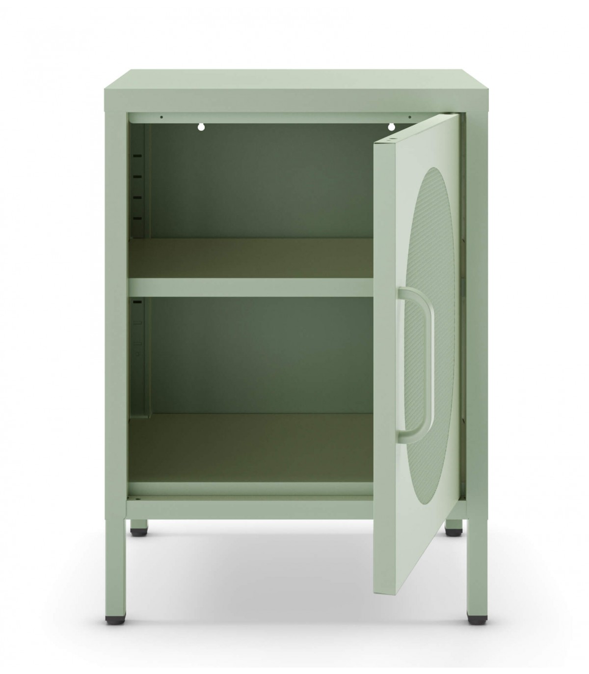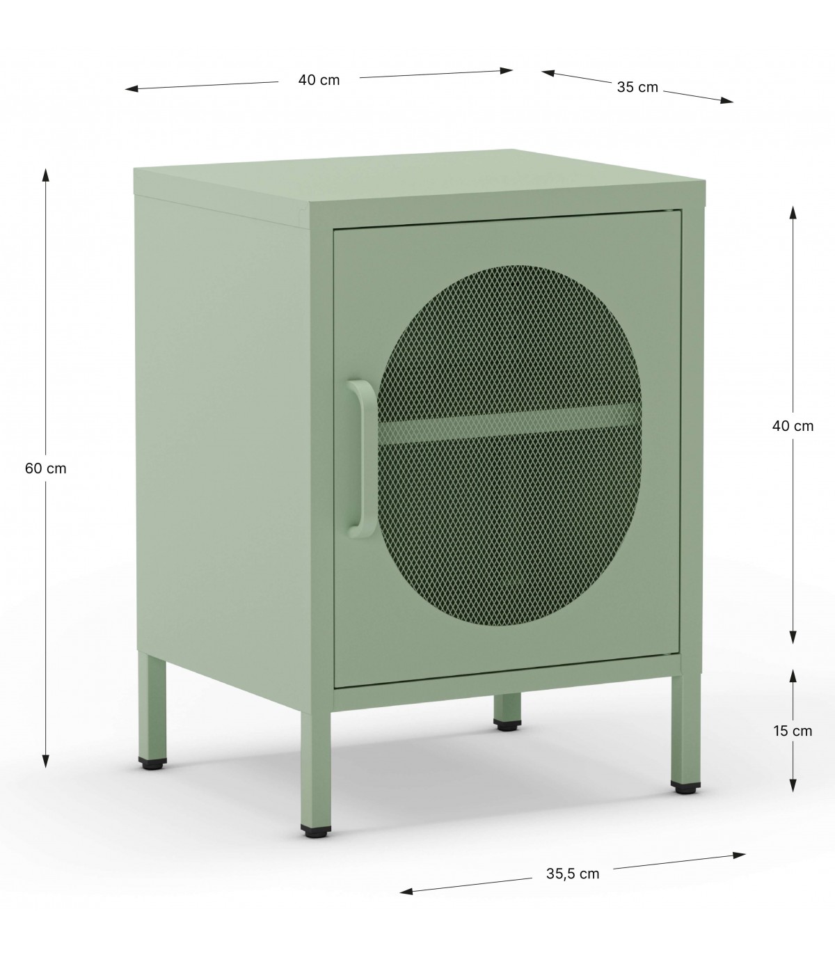 🎨 Acabado: Metal en color verde con la puerta en malla y tiradores a juego.