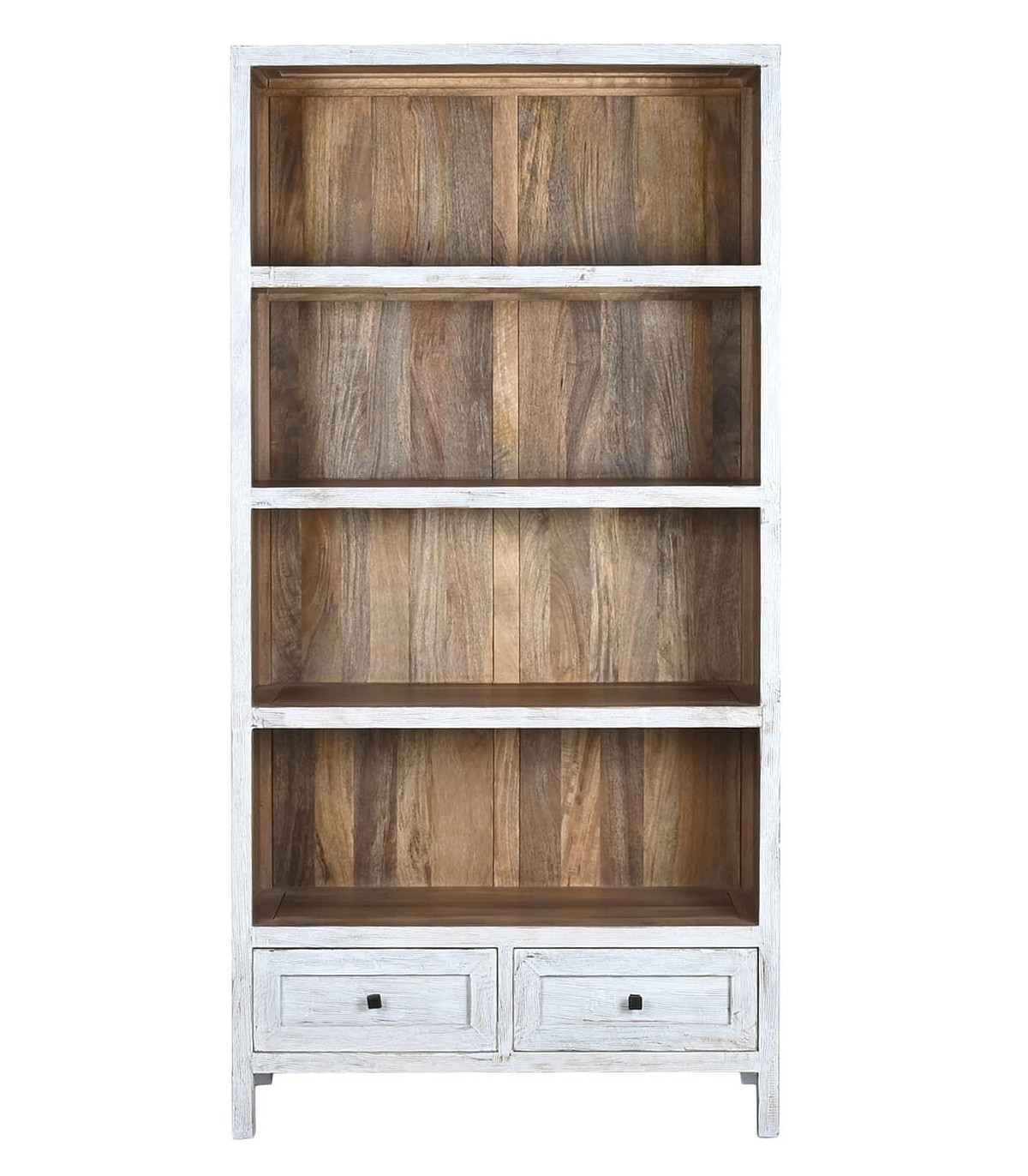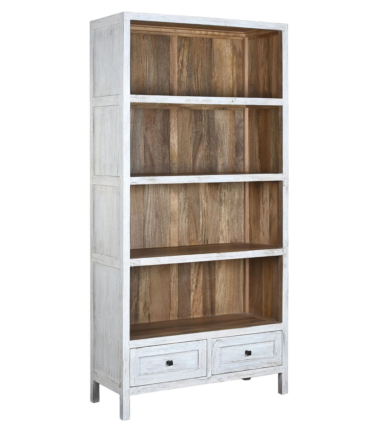 📚 Estantería Alta de Madera de Mango con 2 Cajones – Estilo Boho con Acabado Blanco Desgastado ✨