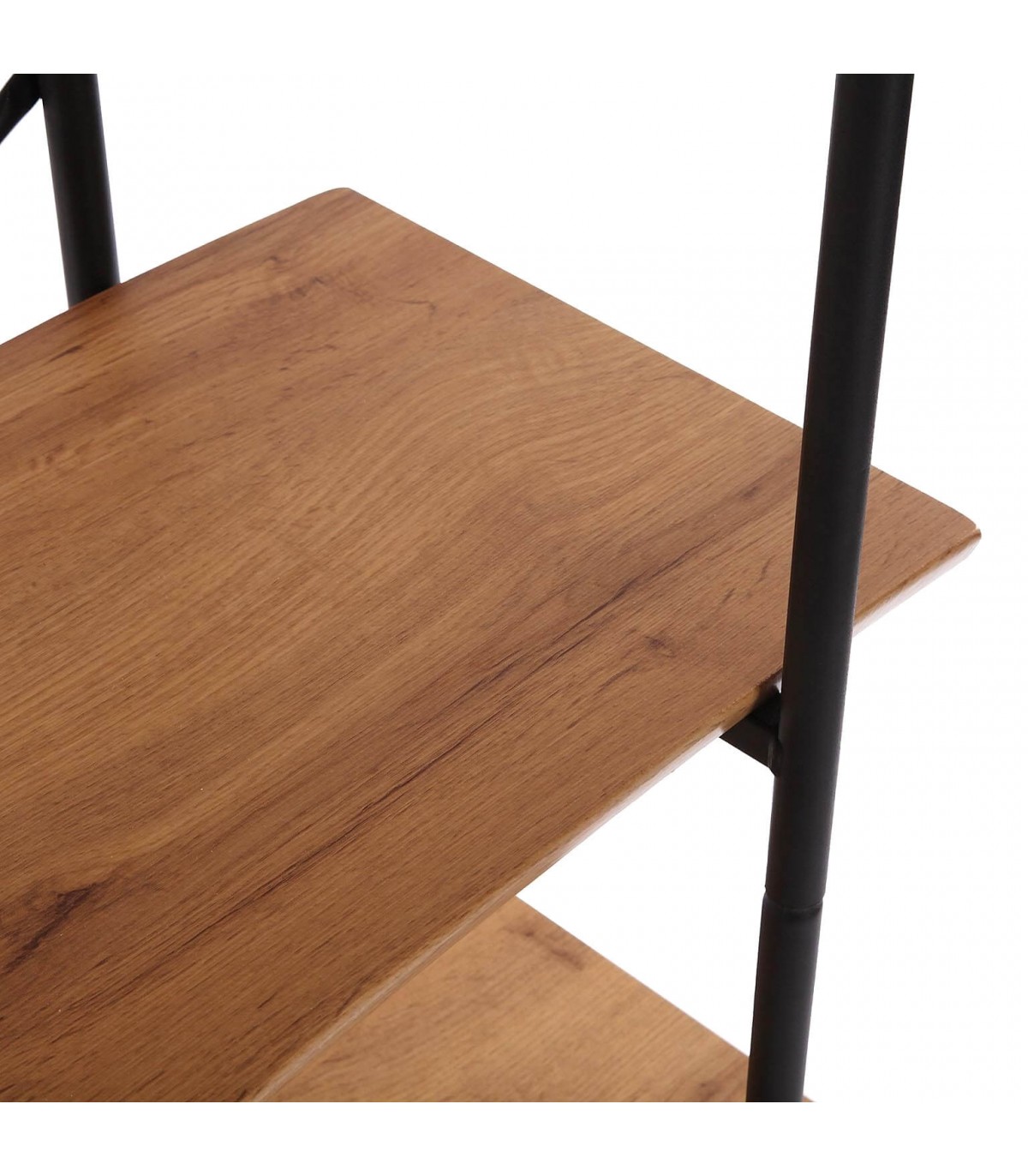 Acabado, madera imitación roble tostado, tubo de hierro negro.
