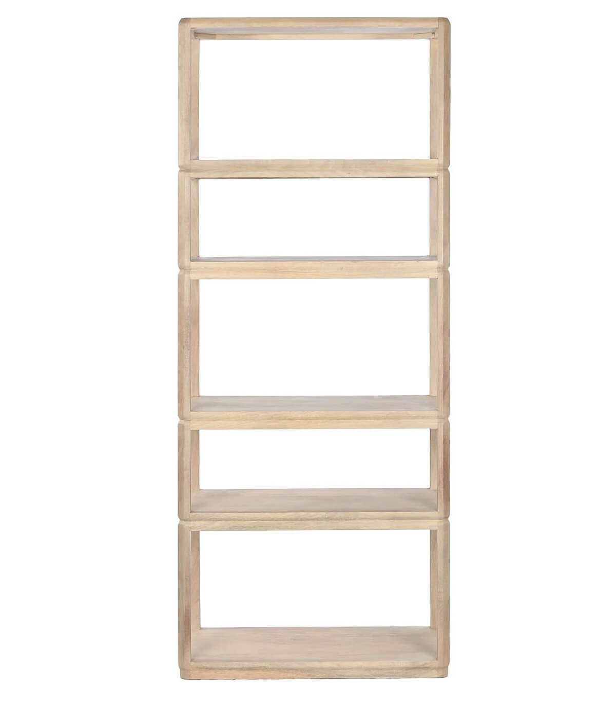 Estantería realizada en madera maciza de mango acabado natural, Una librería de huecos irregulares que aporta mucha frescura y movimiento a tu decoración.