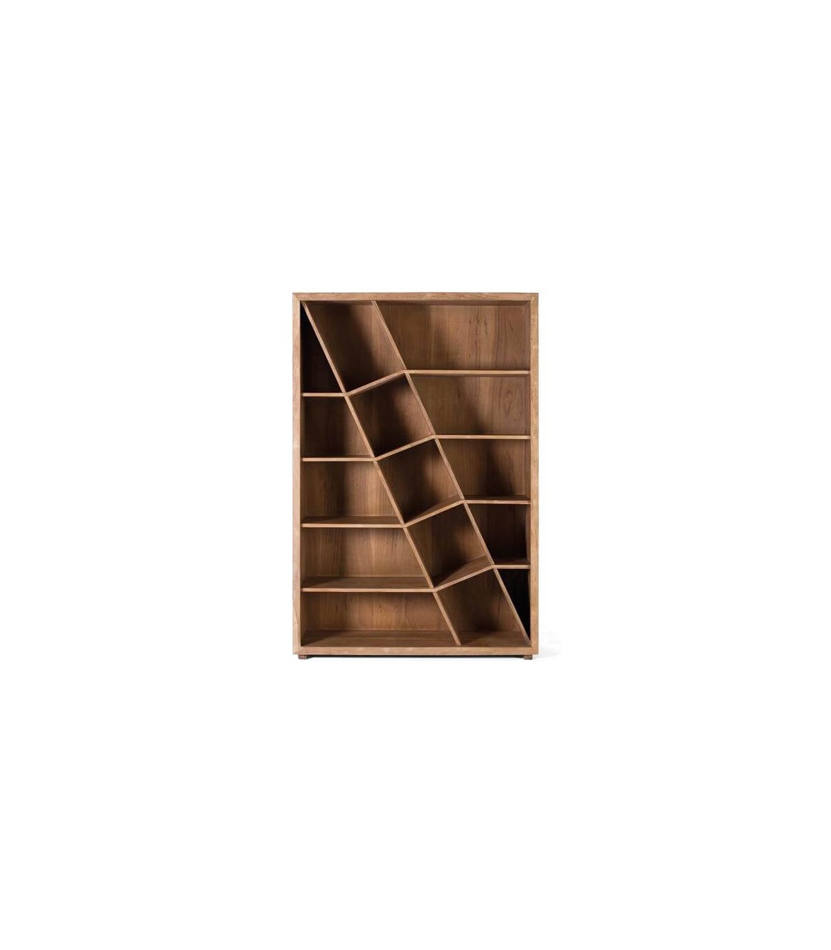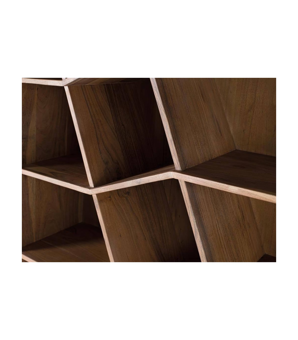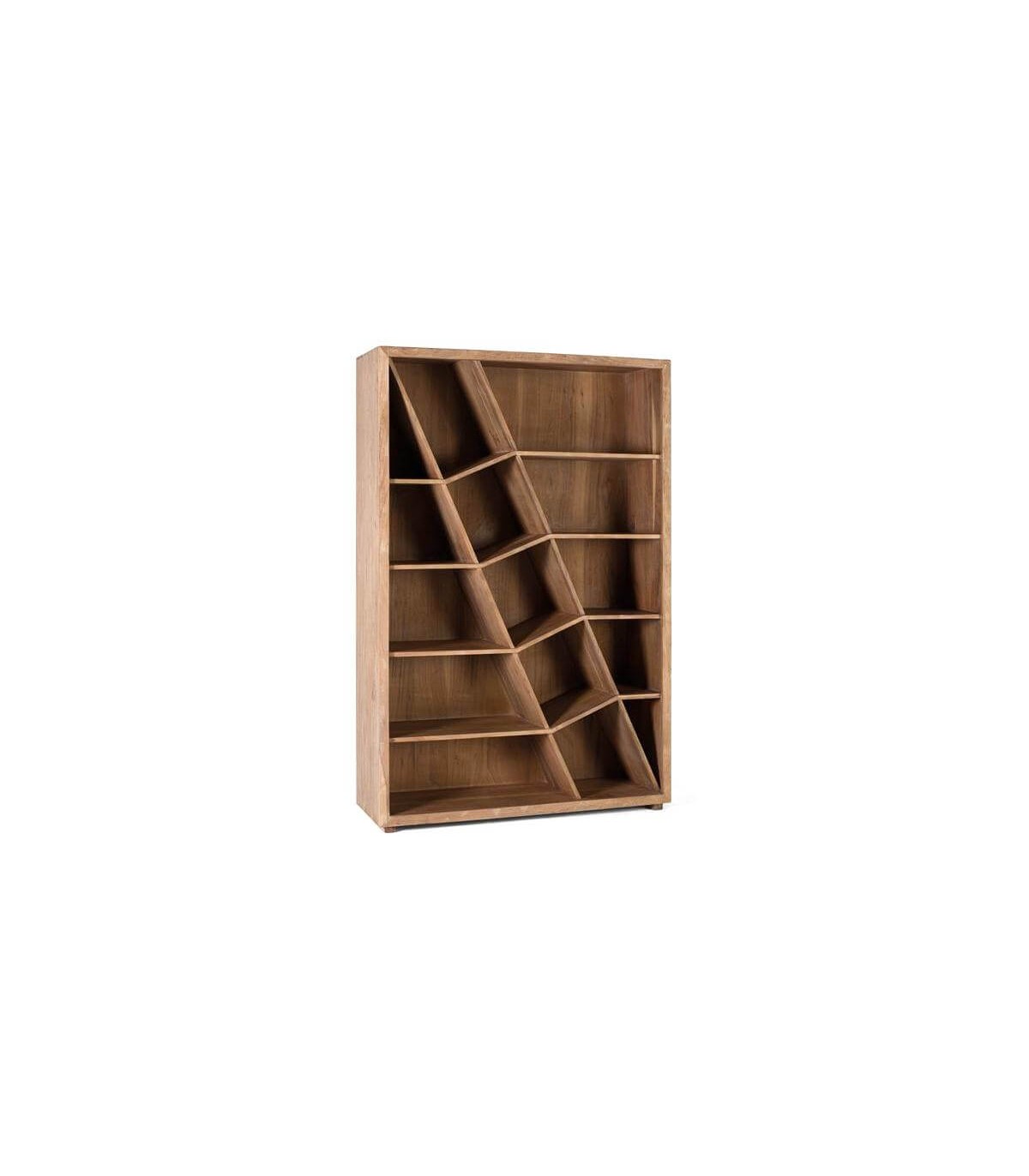 Estantería irregular realizada en madera maciza de acacia acabado natural, Una librería de huecos irregulares que aporta mucha frescura y movimiento a tu decoración.