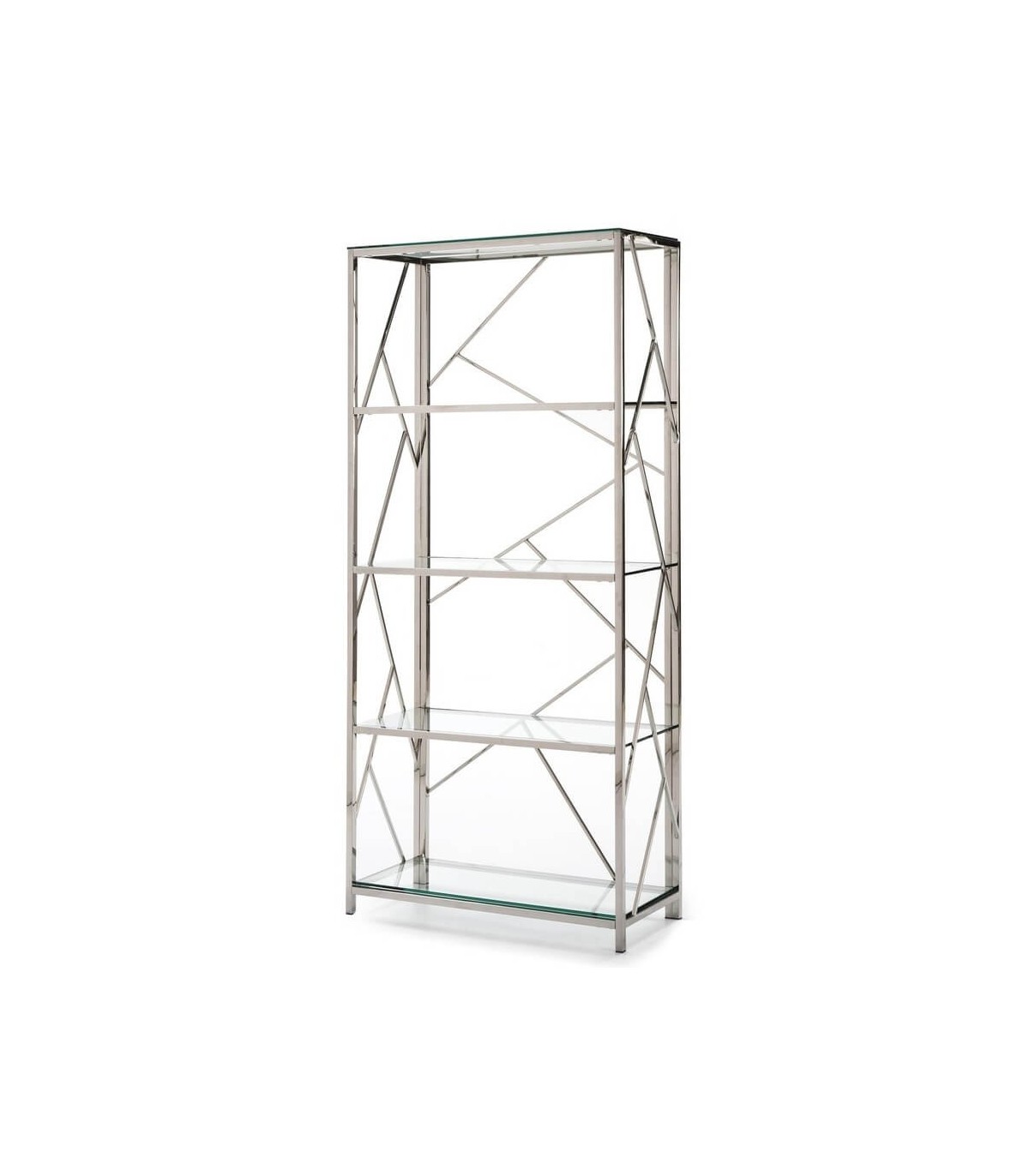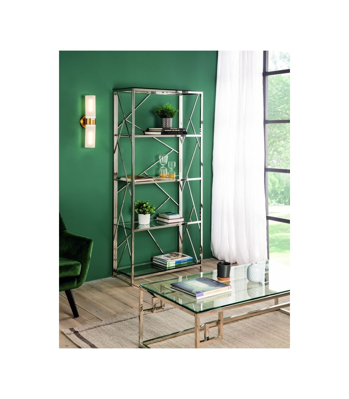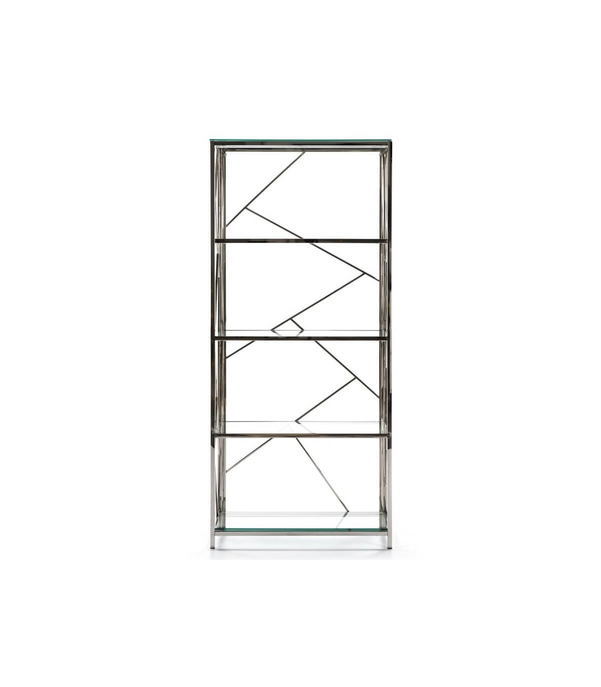 Librería de nuestra colección Steel, una colección que se caracteriza por sus estructuras en acero inoxidable cromadas y el cristal, una colección de muebles auxiliares atemporal, un acierto para cualquier decoración de estilo contemporáneo.