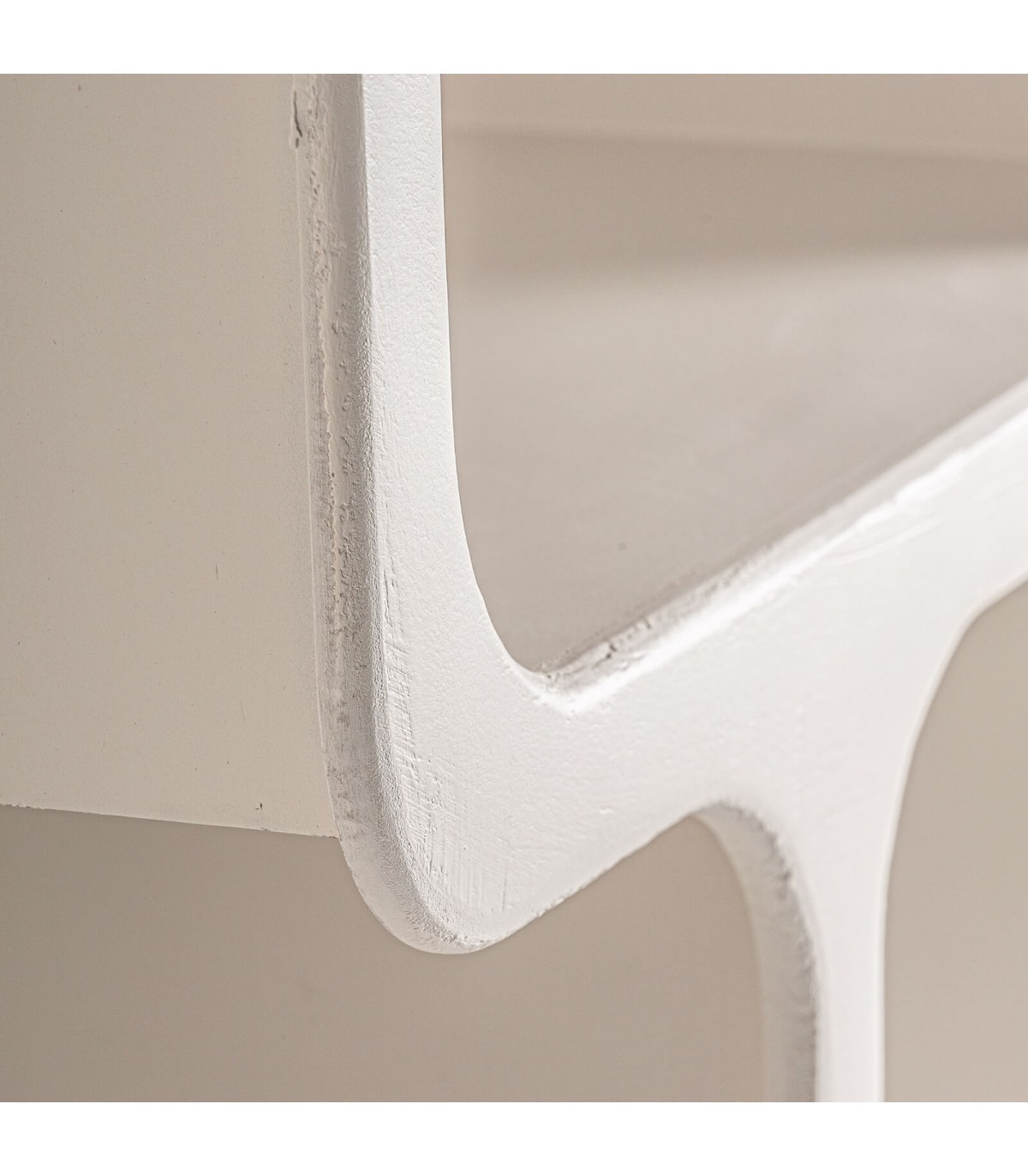 Acabado, pintada en blanco efecto yeso. Fabricación artesanal. entendemos las variaciones de tonalidad, tamaño y forma o ciertas imperfecciones (grietas, nudos, marcas) como un valor añadido que la convierten en pieza única.