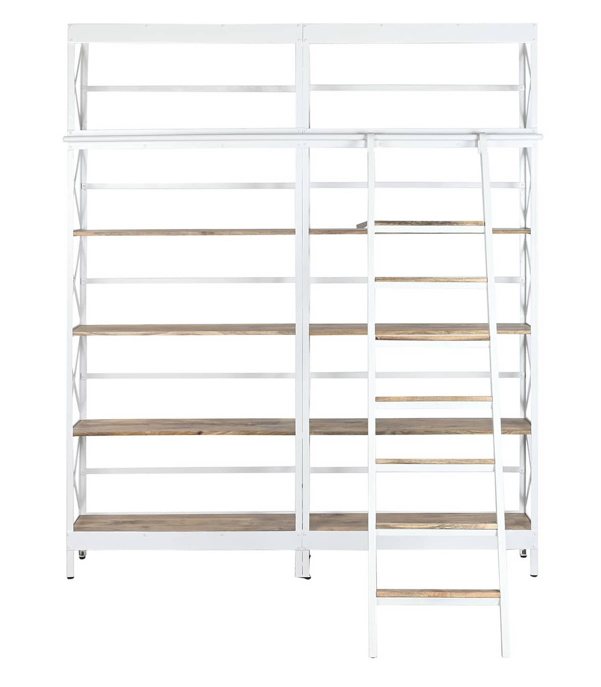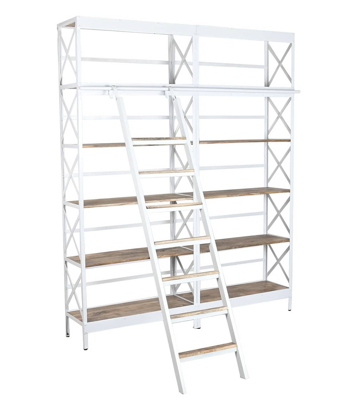 Aporta un toque moderno y sofisticado a tu hogar con esta librería con escalera, fabricada en madera maciza de mango y estructura metálica blanca. Su diseño elegante y funcional ofrece amplio espacio de almacenamiento.