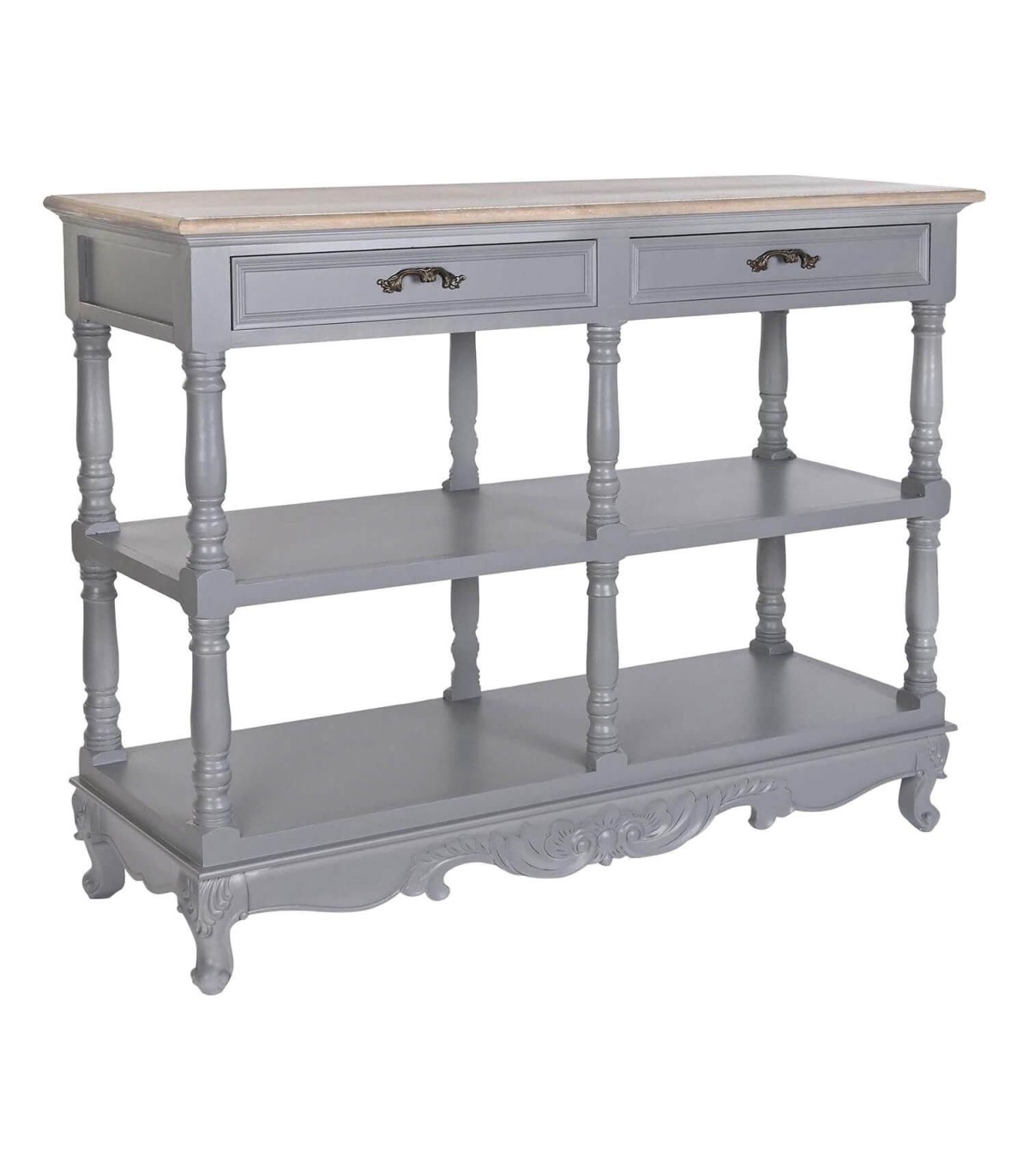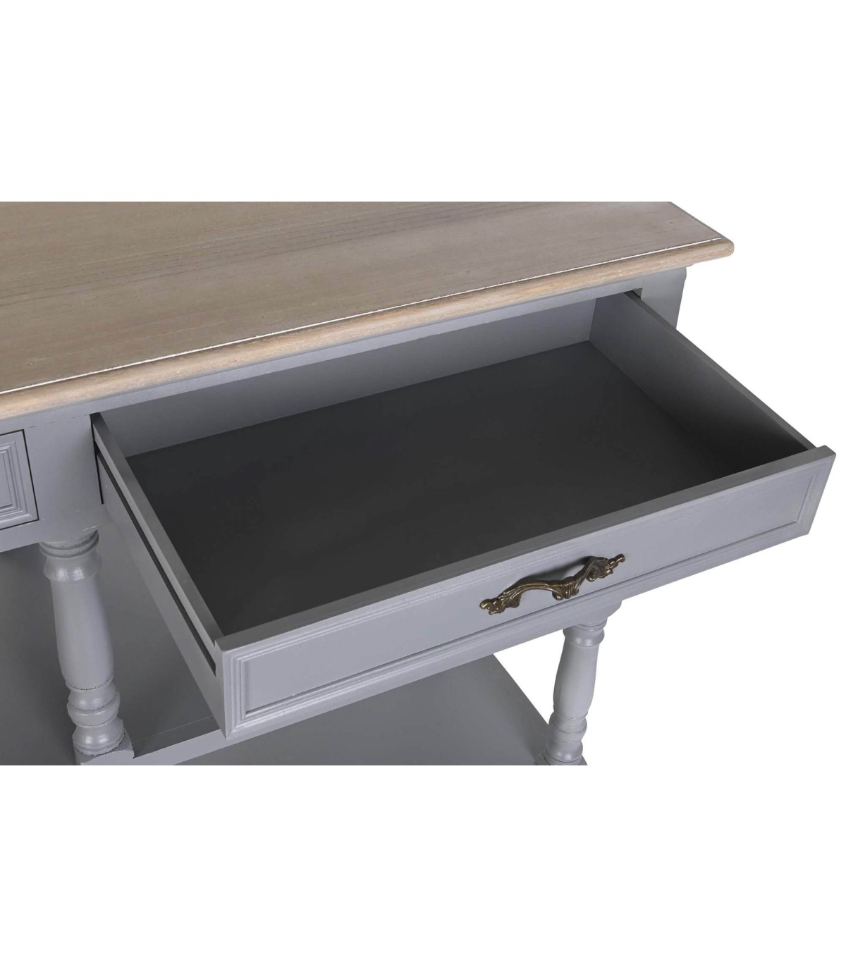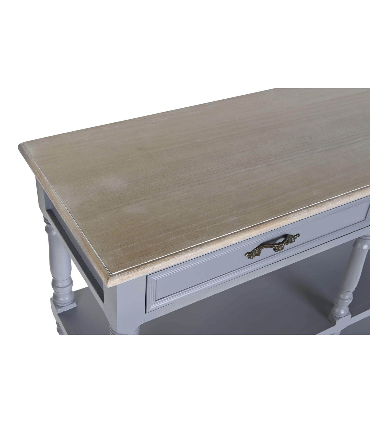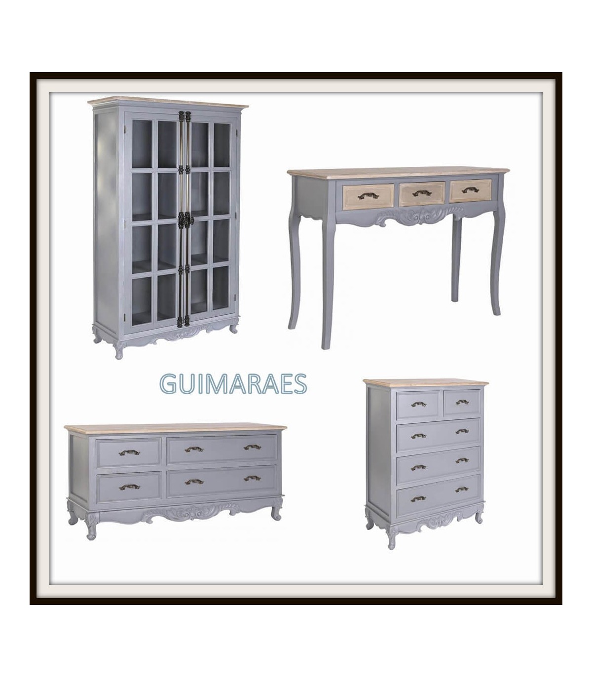 El acabado gris con el contraste de la madera natural aporta luminosidad y carácter, una colección de muebles que nunca pasará de moda, ideal para decoraciones completas o para utilizarla como mueble auxiliar.