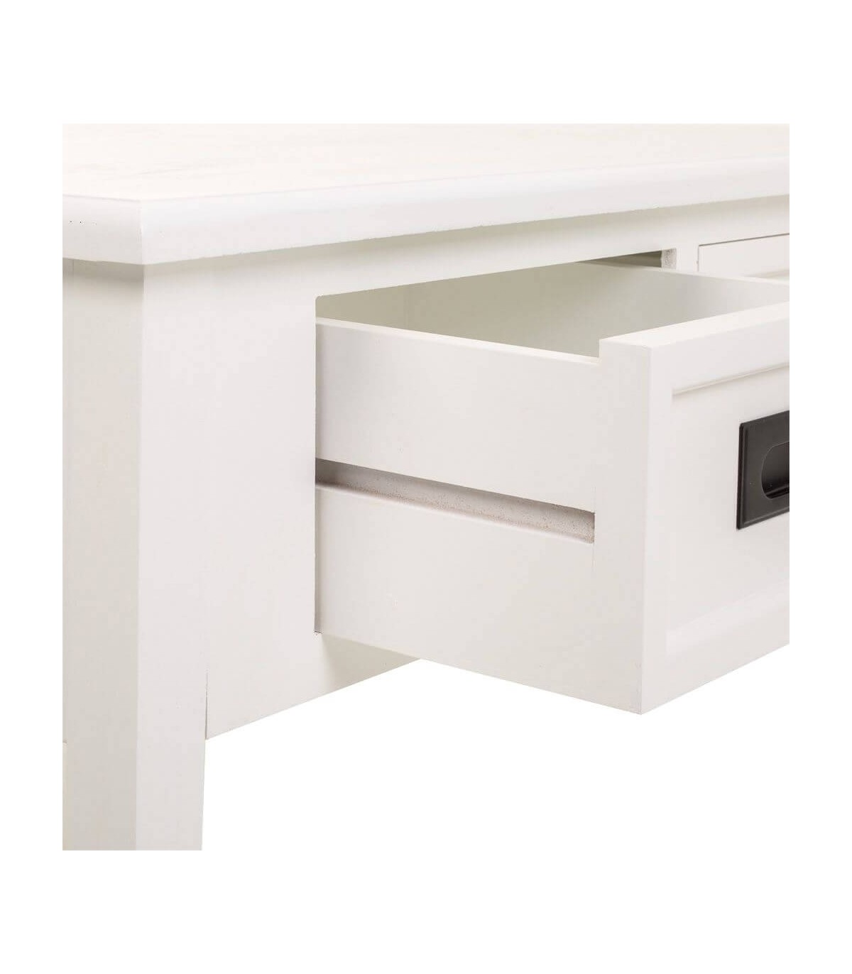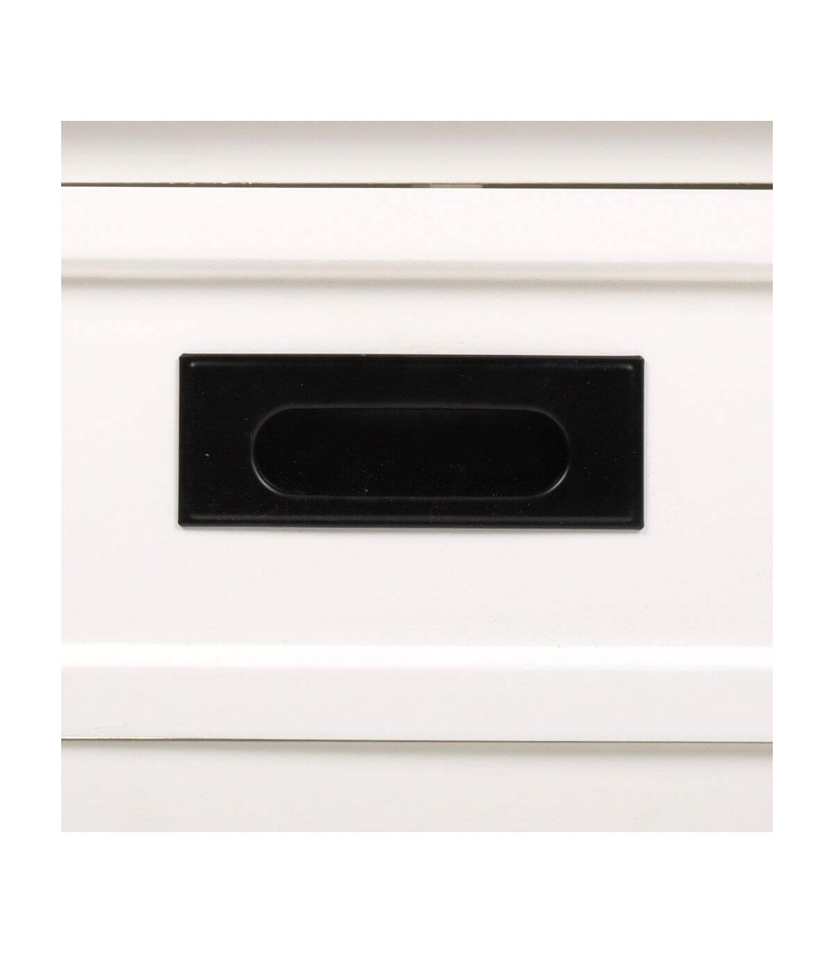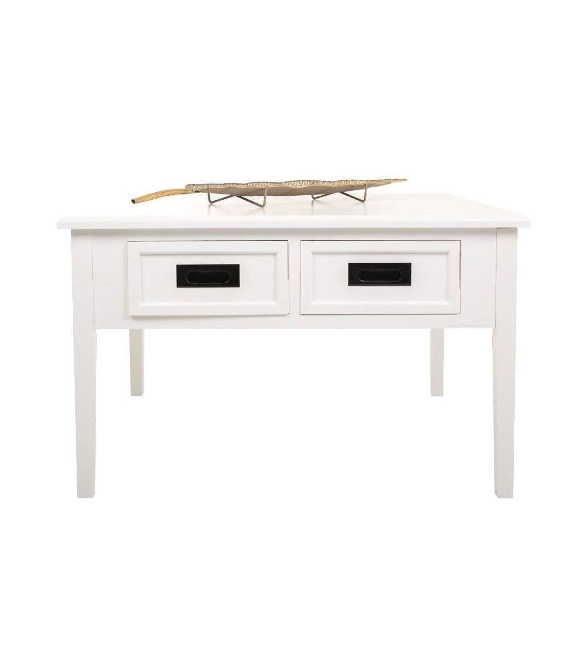 Mesa de centro de nuestra colección Paros, una colección que se caracteriza por su luminosidad, realizada en madera lacada en blanco de líneas rectas con el contraste del tirador en metal negro, una colección de muebles auxiliares con los que podrás darle un toque mediterráneo a cualquier estancia de tu hogar.