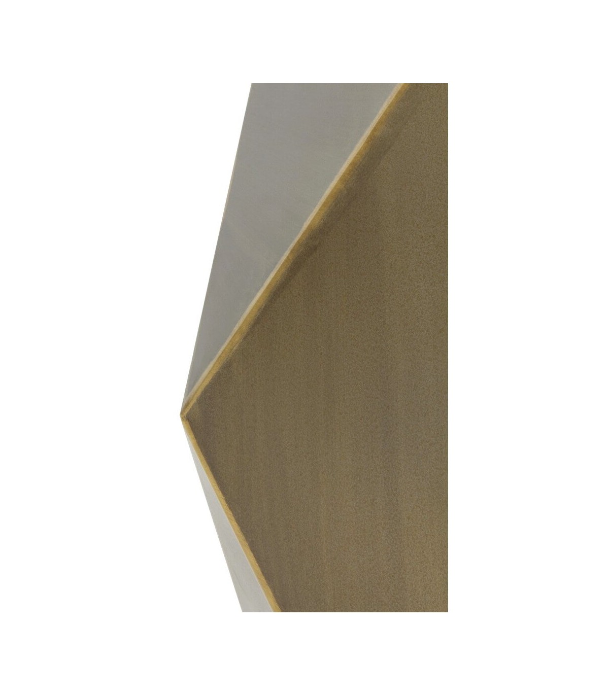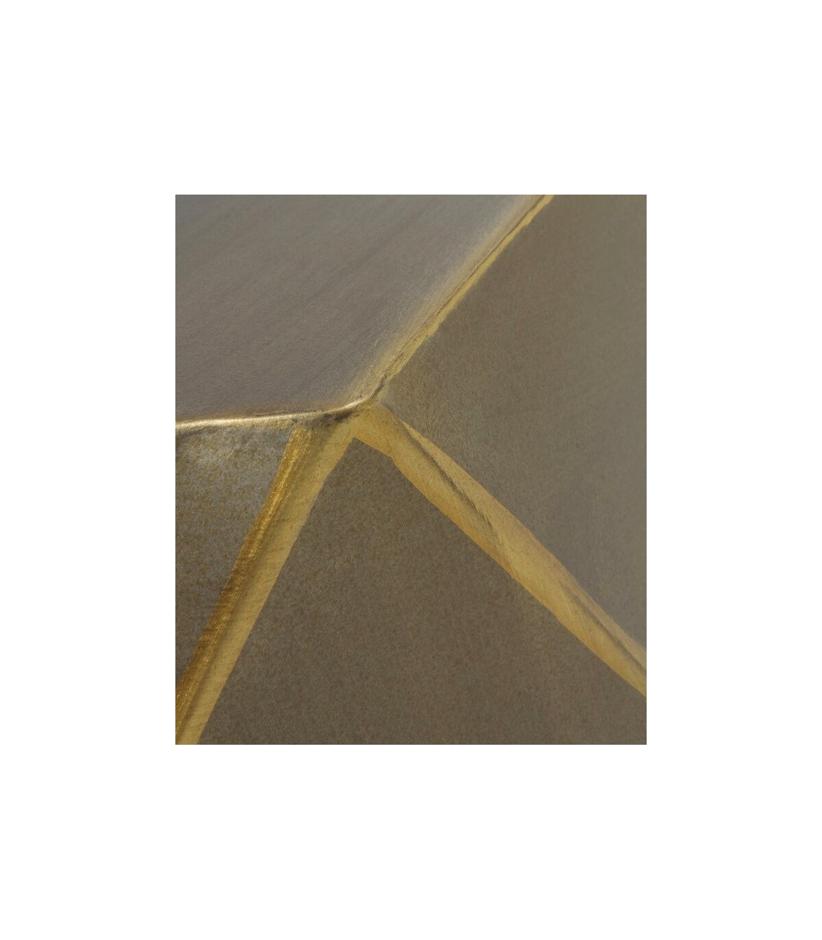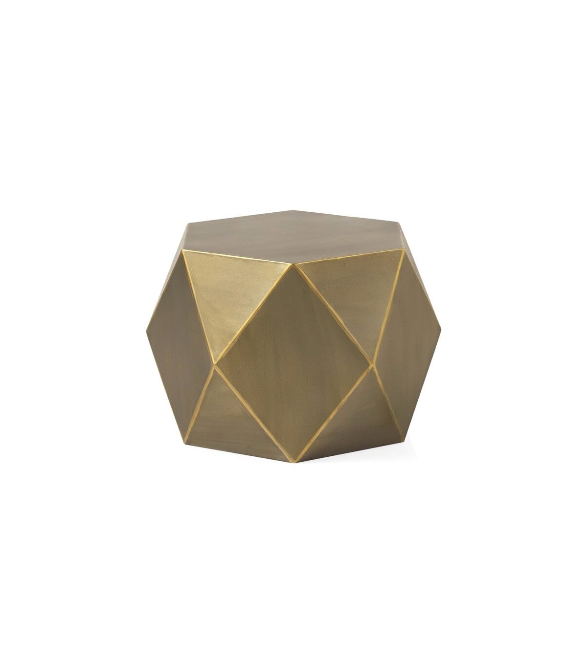 Mesita auxiliar con forma de hexágono realizada en metal acabado oro viejo, una mesita ideal para poner como mesa de centro en salones pequeños, con mucho movimiento, una mesa auxiliar muy decorativa.