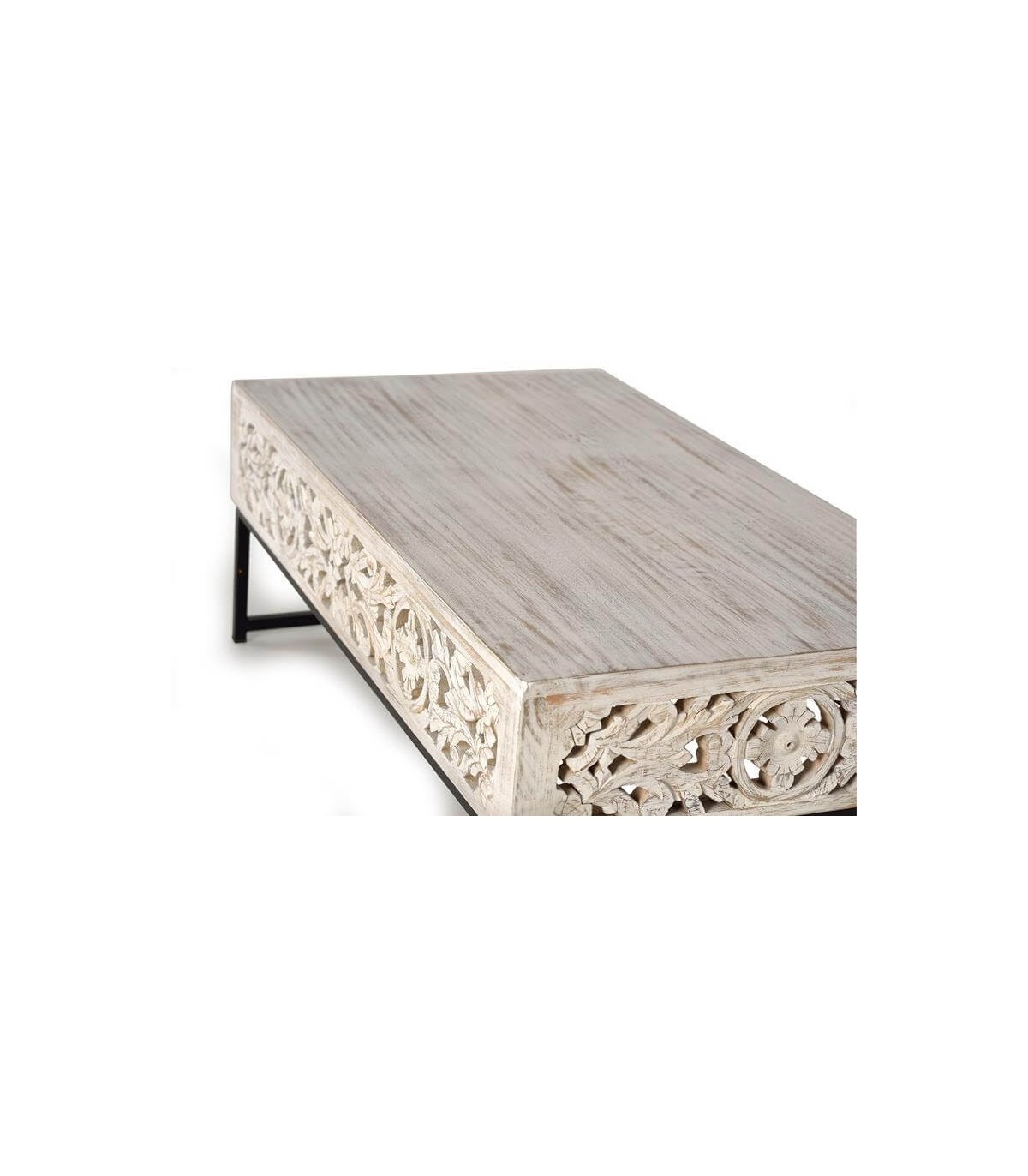 🎨 Acabado: Madera tallada a mano en blanco lavado, tiradores en madera, patas en metal negro. Fabricación artesanal....