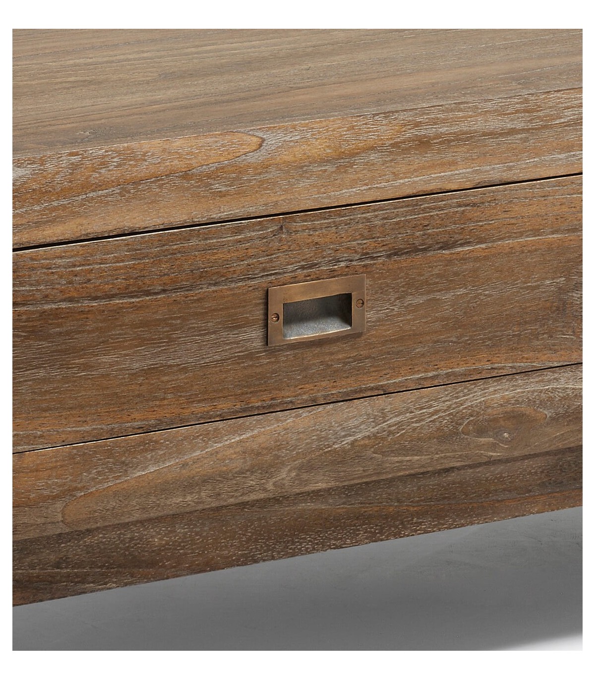 • Material, madera maciza de mindi, tiradores bronce antique.