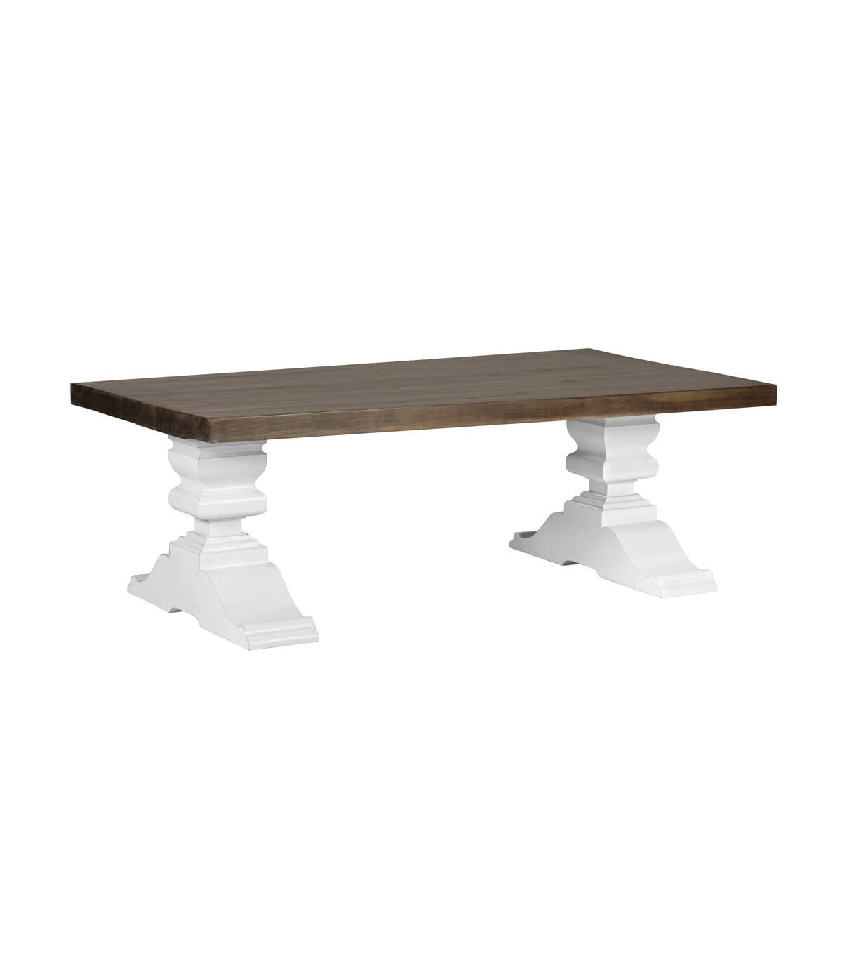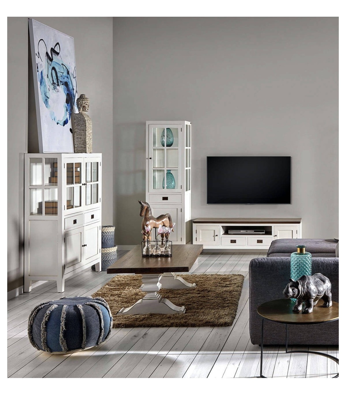 Mesa de centro de nuestra colección Everest, una colección realizada en madera maciza de caoba lacada en blanco con los tiradores en bronce, algún modelo está combinado con la madera de caoba en su color, un mueble a temporal que encajará perfectamente en cualquier tipo de decoración, como mueble singular o conjuntándolo con muebles de la colección.