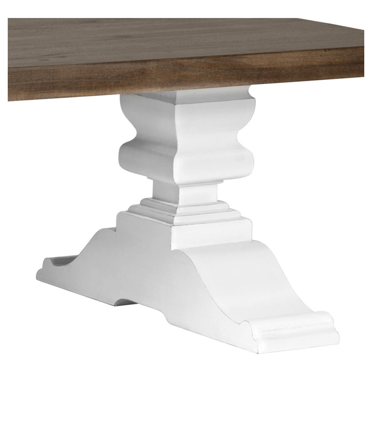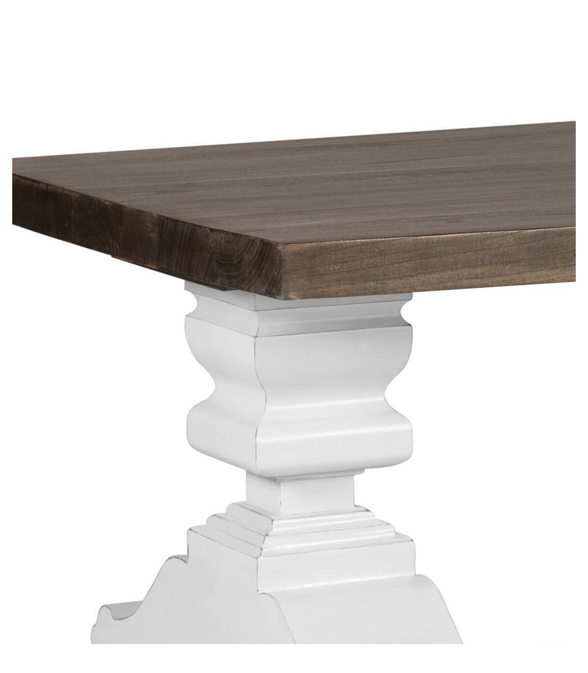 Acabado, tapa en caoba natural, patas acabado blanco.