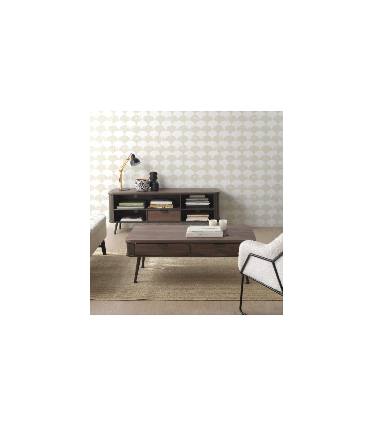 MESA DE CENTRO 120 X 60 BLUVIA METAL GRIS MADERA COLOR NOGAL