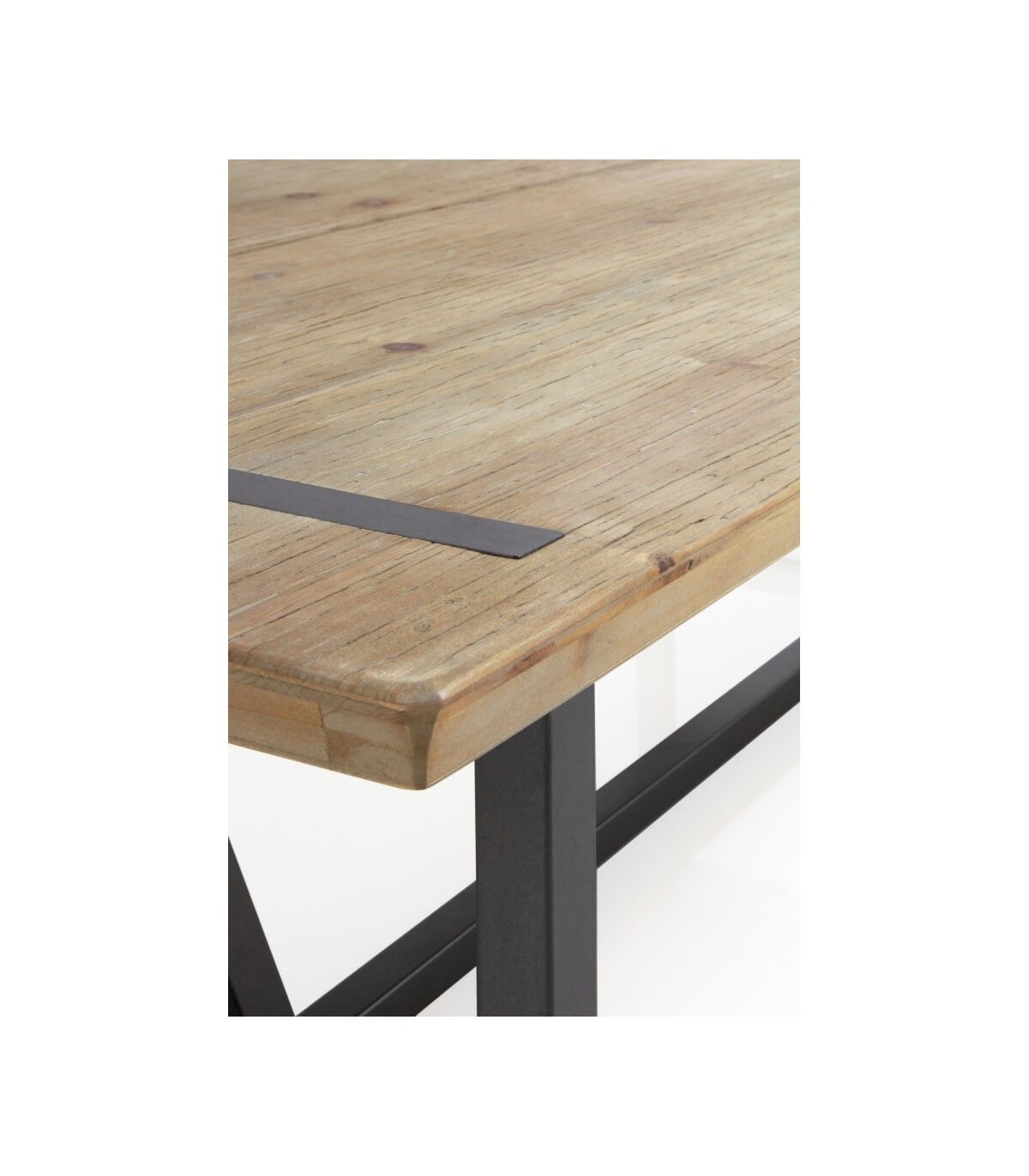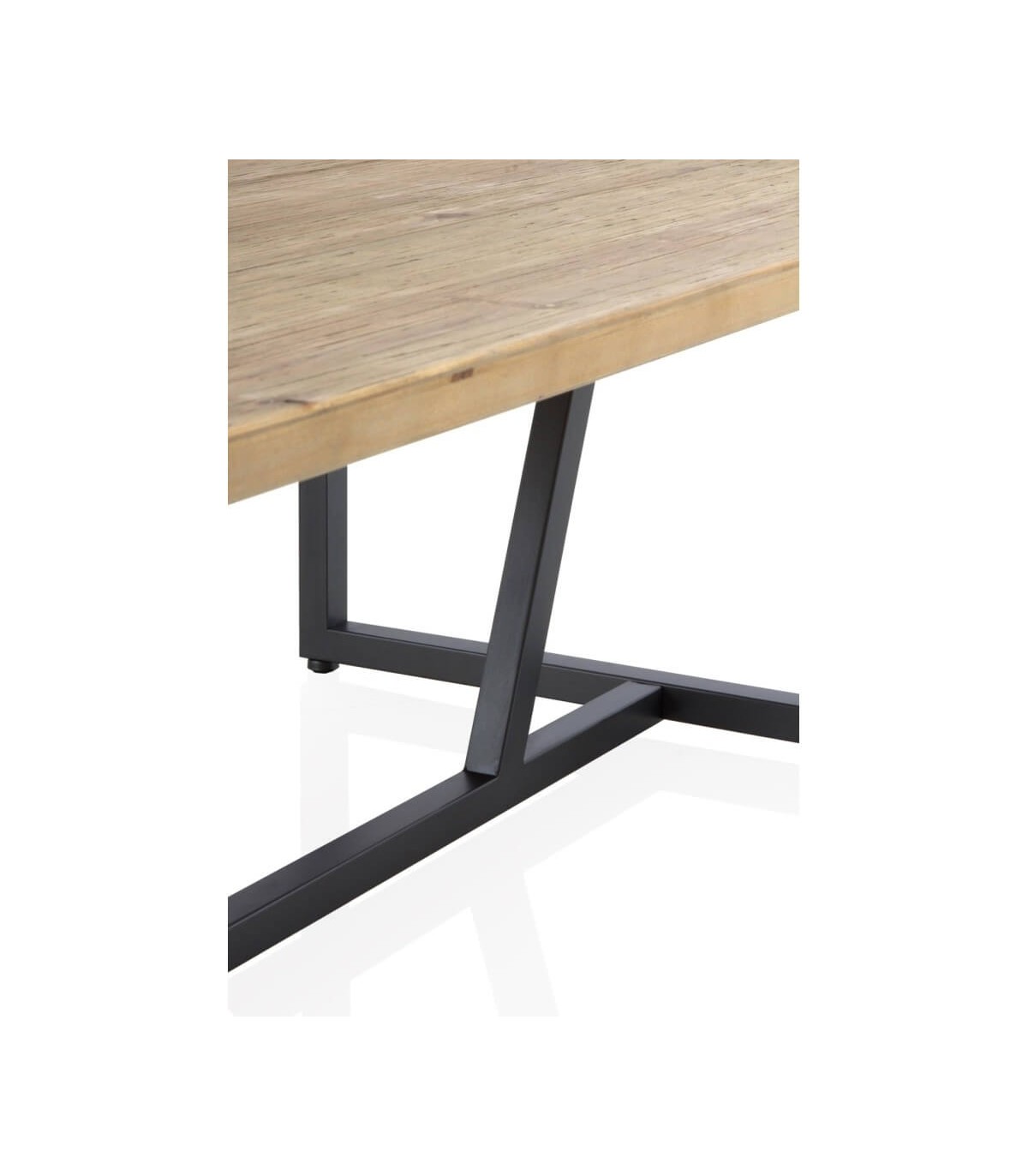 Acabado, tapa de madera de abeto natural y patas en metal color negro.