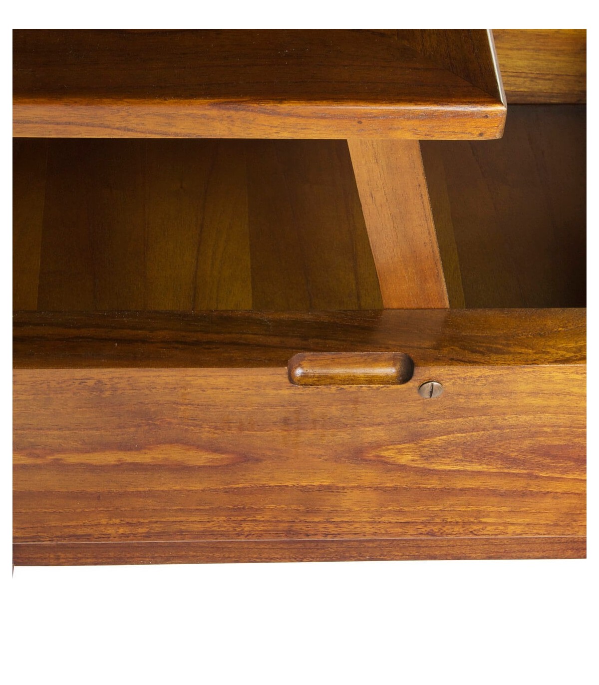 - Acabado, 100 % artesanal, hecho a mano. Madera maciza acabado teca, frente de cajones lacados en blanco, tiradores bronce.