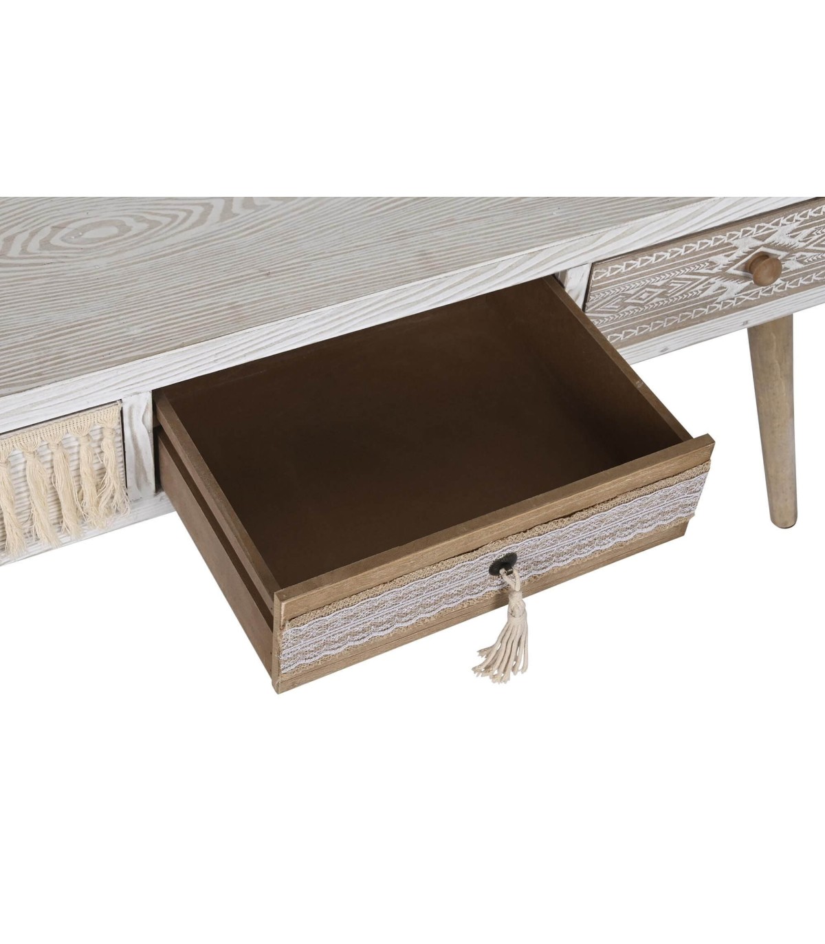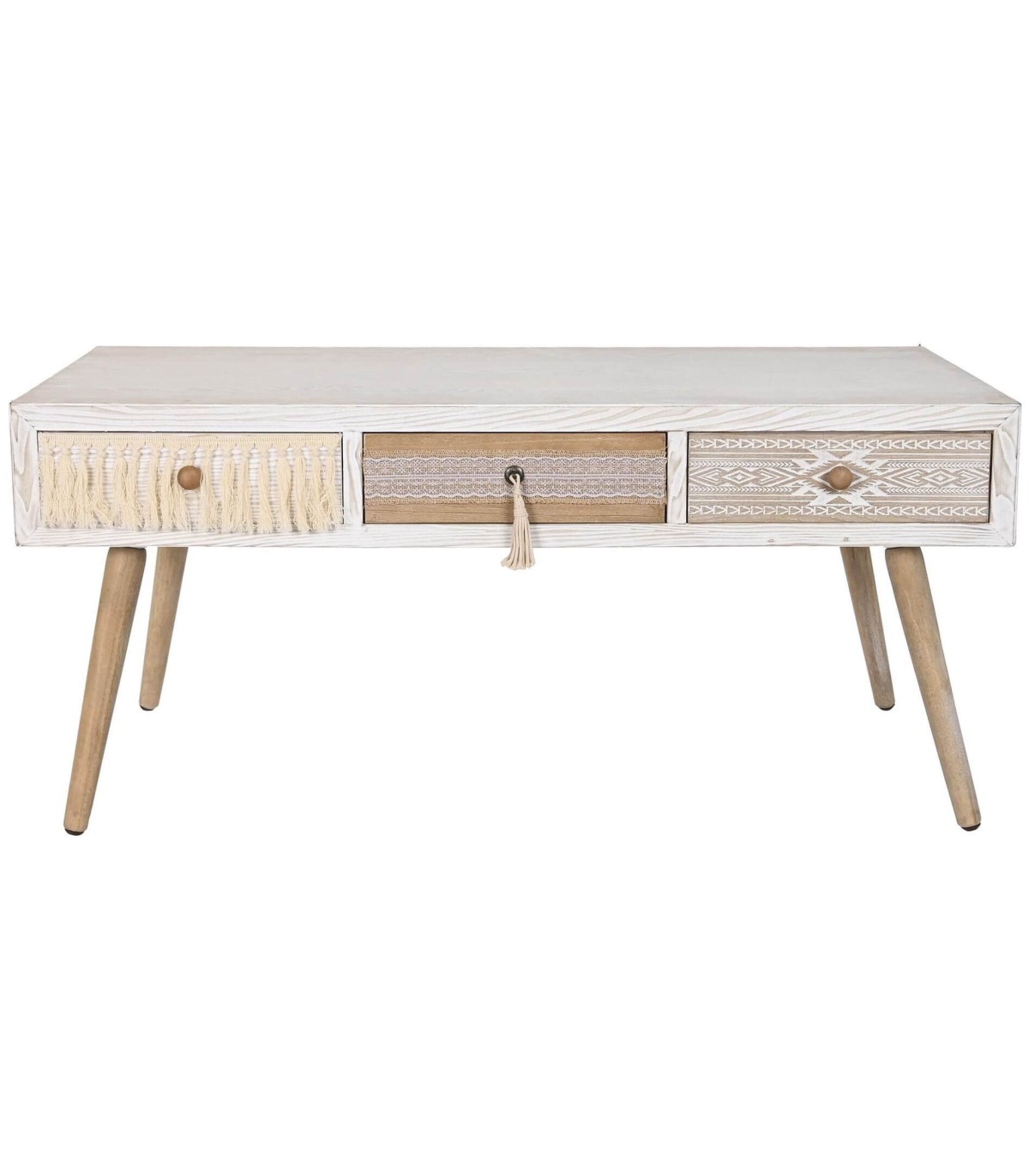 • Mesa de centro, 3 cajones, estilo boho chick.