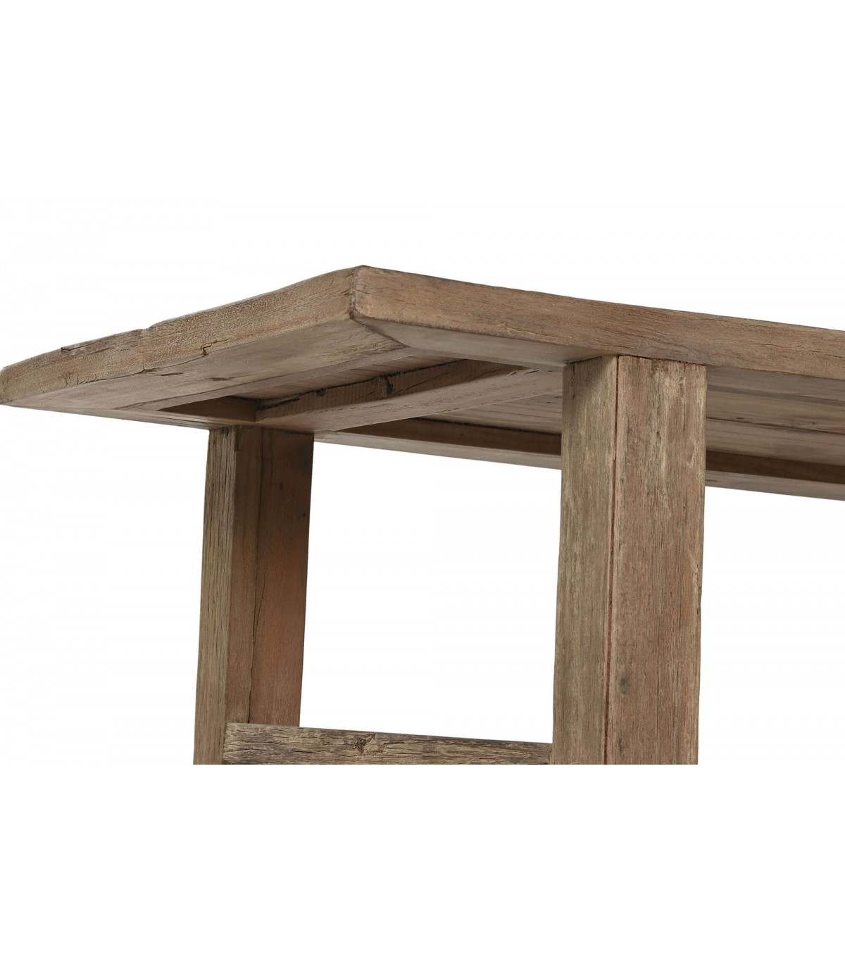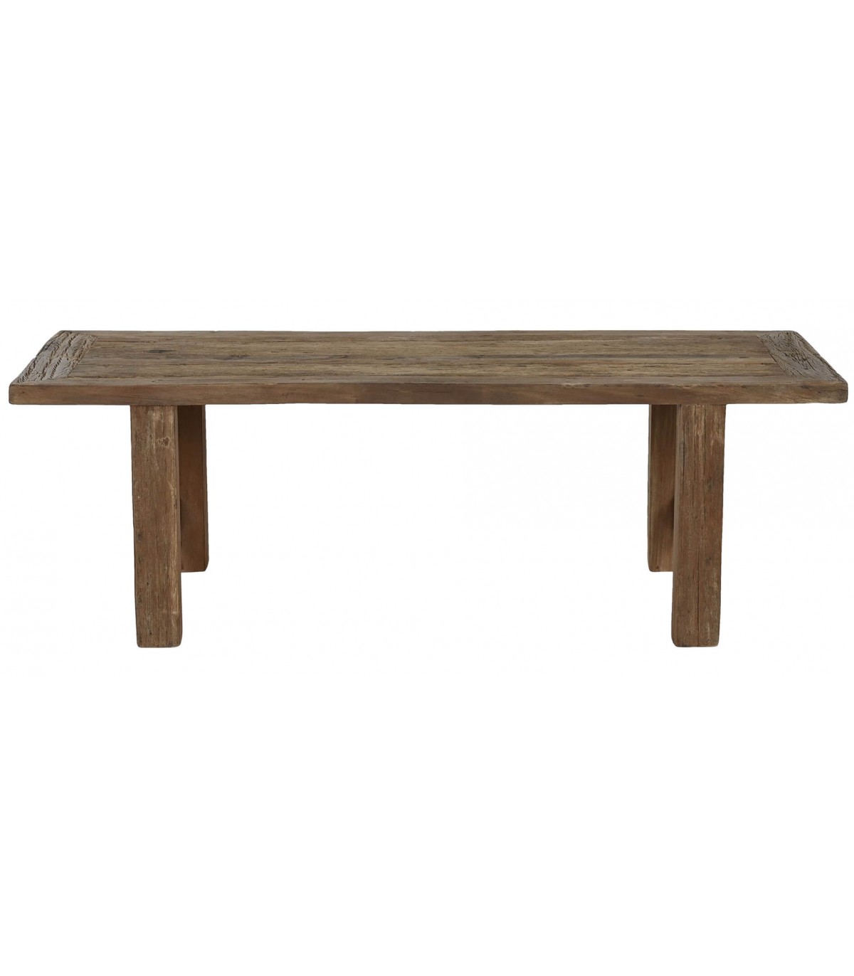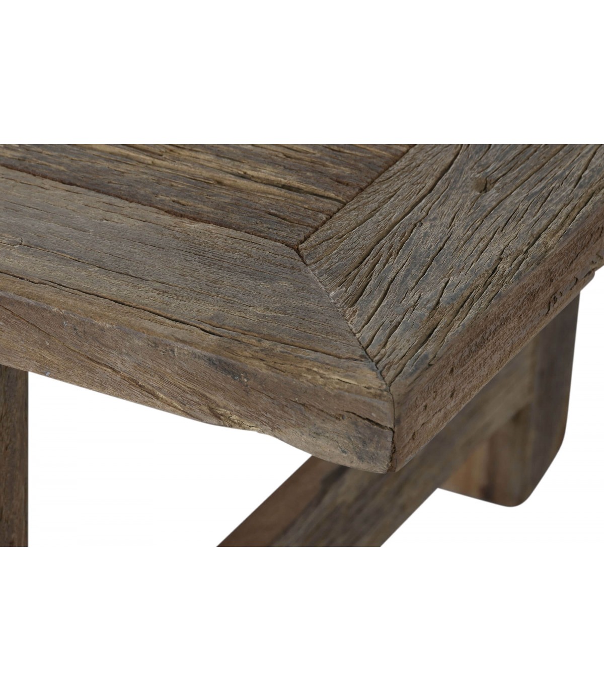 Mesa de centro rectangular grande de estilo rústico realizada en madera de teca reciclada y tratada, adaptable a cualquier tipo de decoración como pieza singular.