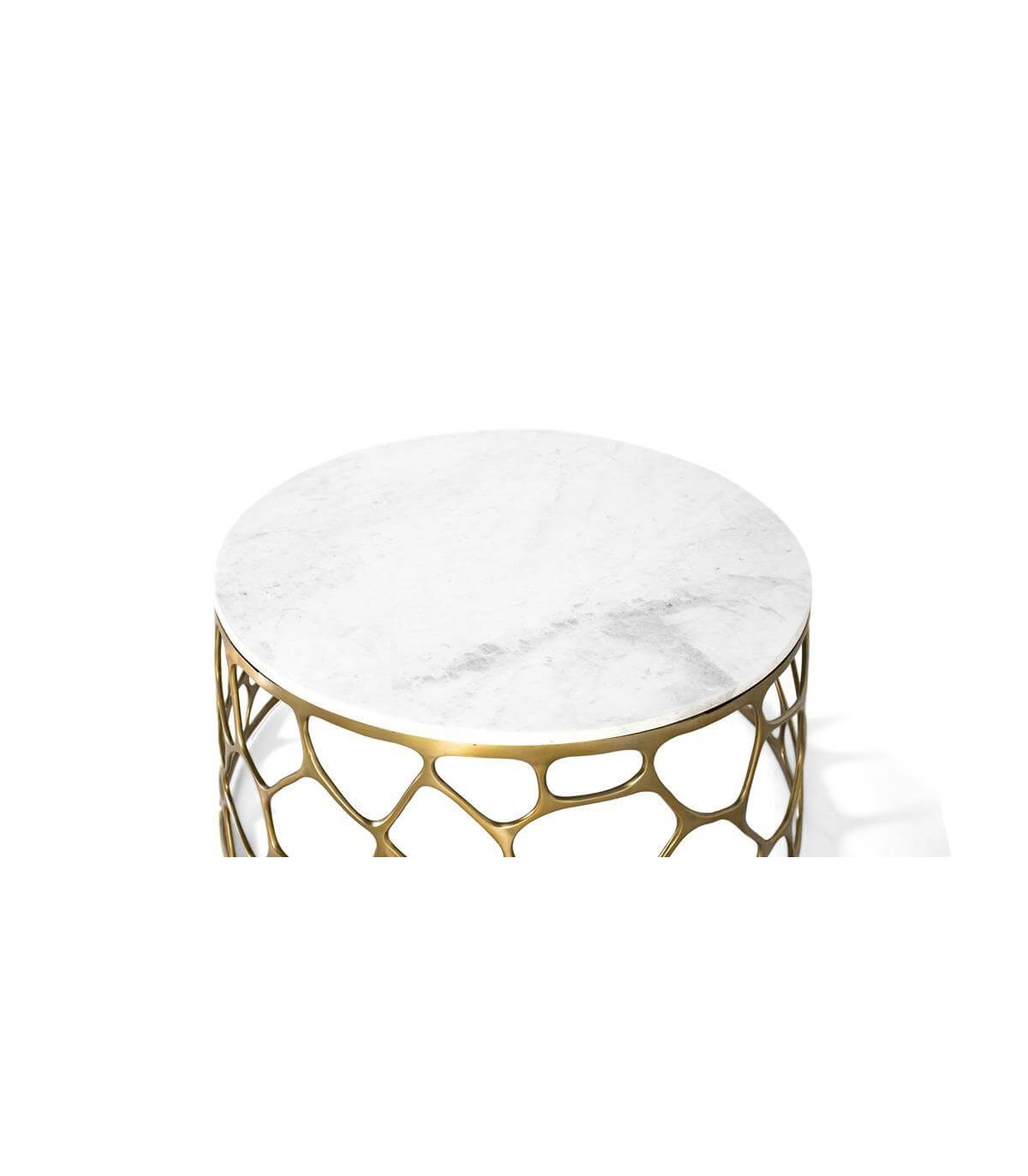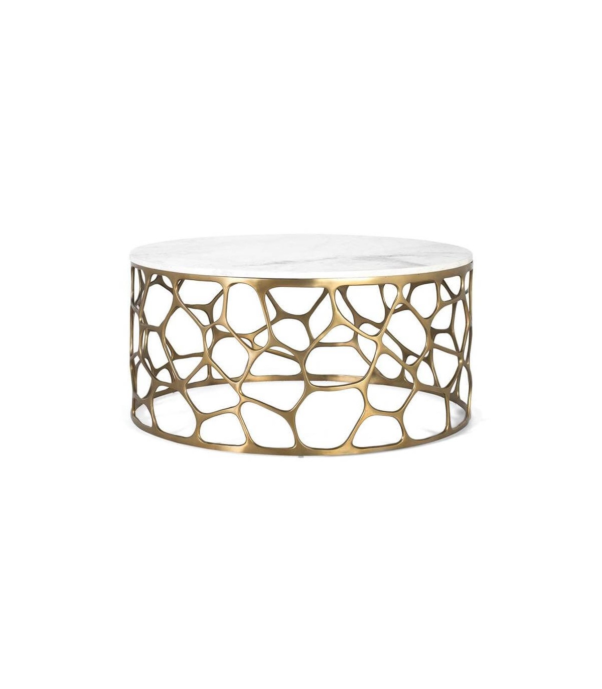 MESA DE CENTRO REDONDA 90 Ø X 44 LOLEN ALUMINIO DORADO MARMOL BLANCO