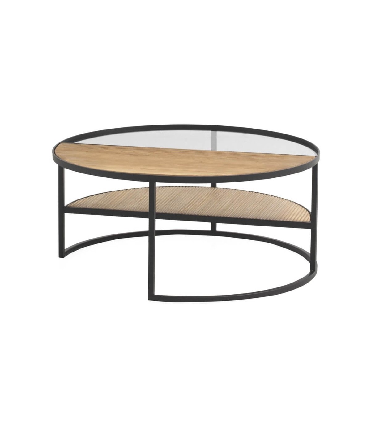 MESA DE CENTRO 80 Ø ONALSI MADERA NATURAL METAL NEGRO