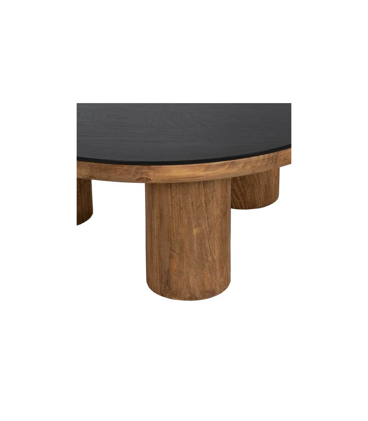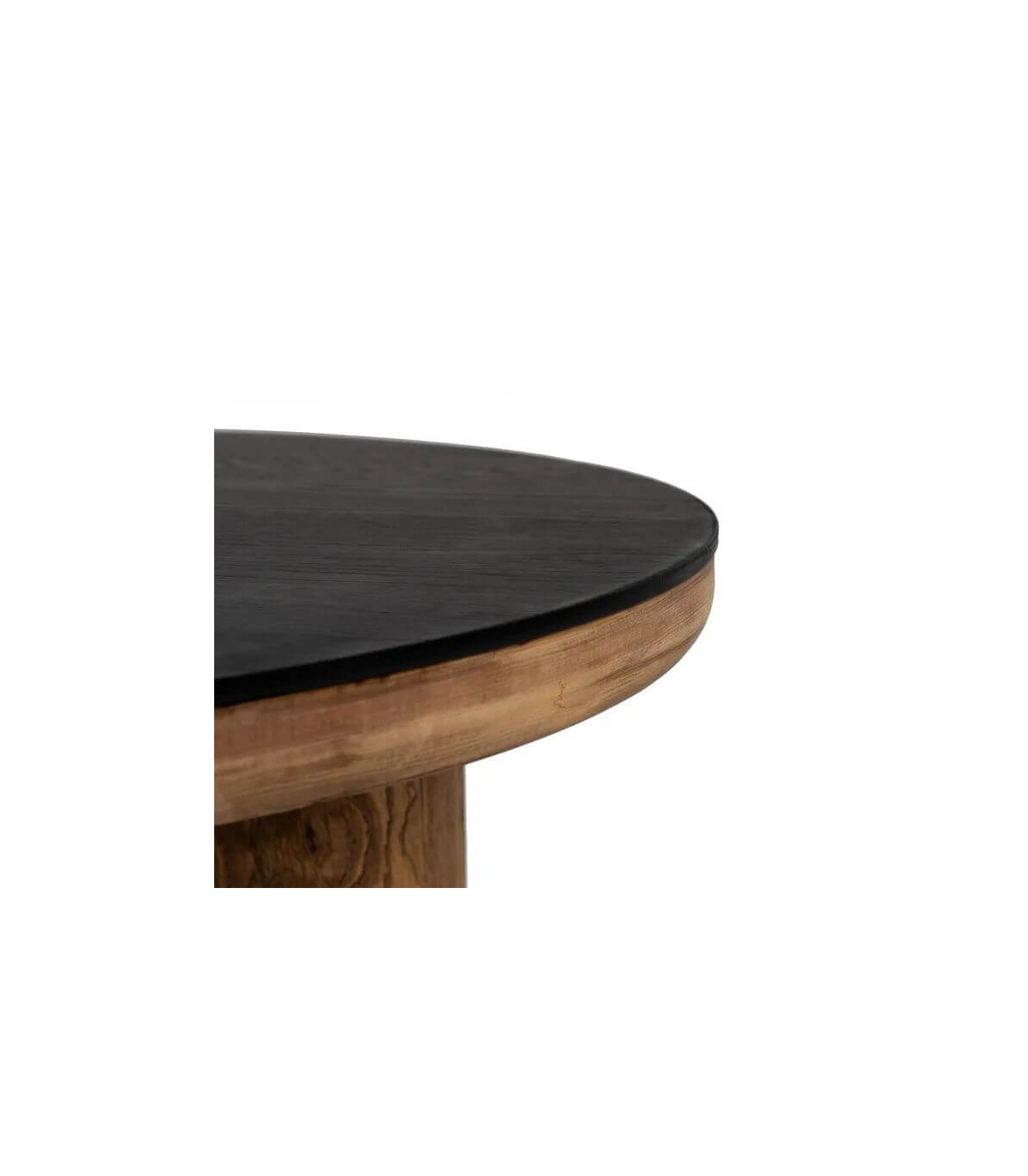 Acabado, patas y base en madera de pino reciclada y tapa en madera de roble color negro.