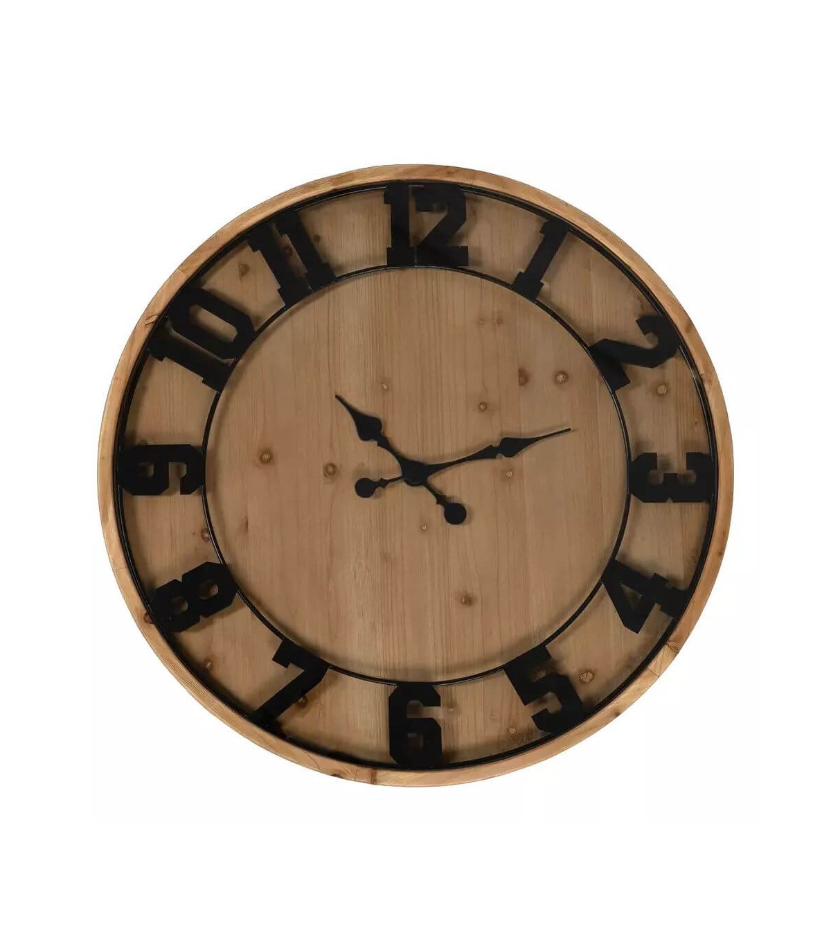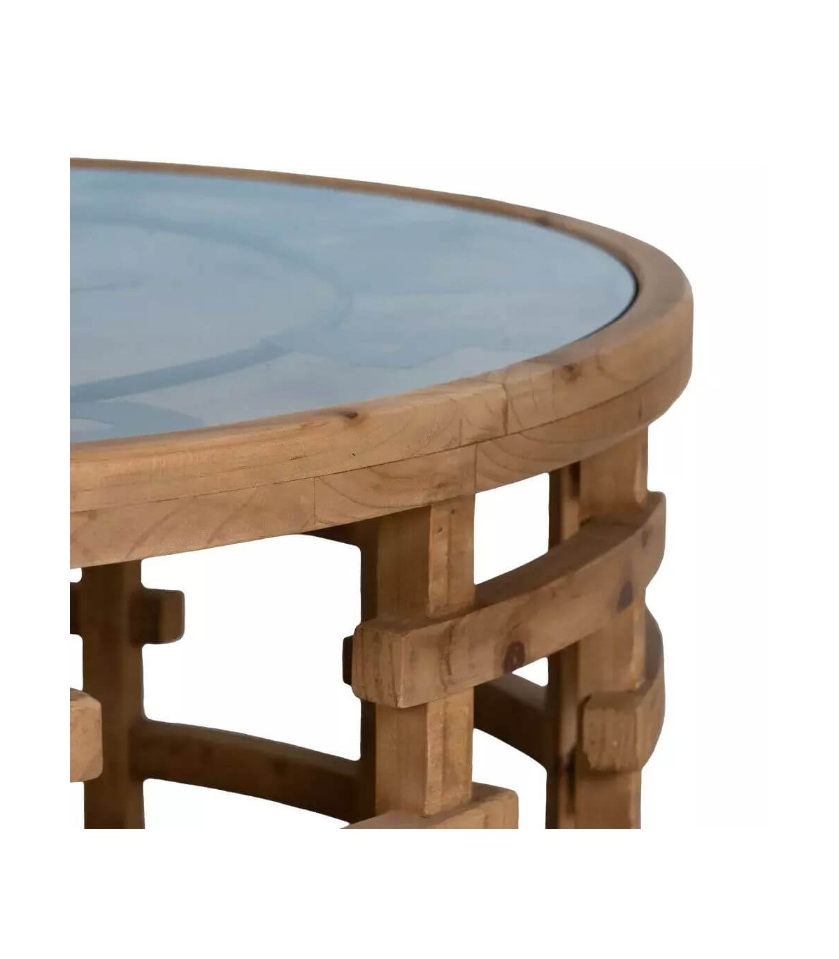 MESA DE CENTRO 80 Ø X 36 RELOJ MADERA METAL Y CRISTAL