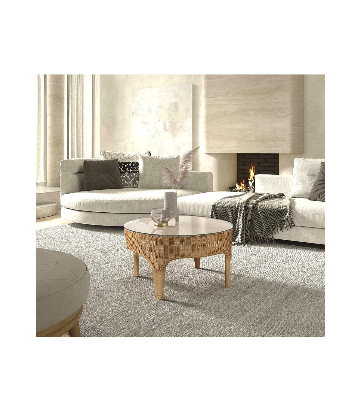 MESA DE CENTRO REDONDA 75 Ø X 40 JUNCAL RATAN NATURAL Y CRISTAL