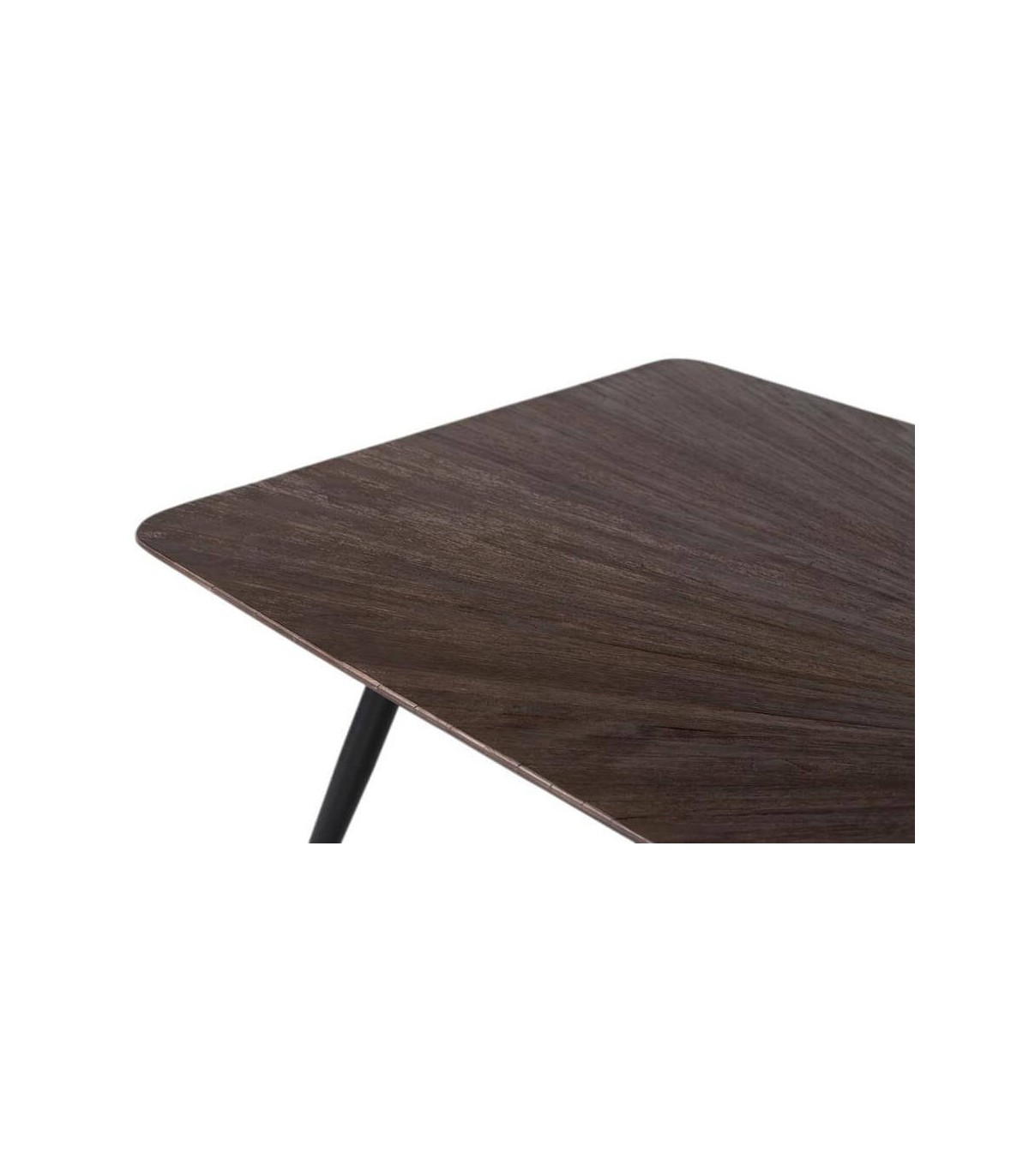 Esta imponente mesa de comedor XL destaca por su diseño robusto y contemporáneo, ideal para ambientes industriales con un toque refinado. La tapa está elaborada en madera maciza de teca reciclada con un elegante efecto de vetas en plumeado que aporta profundidad visual y carácter artesanal.