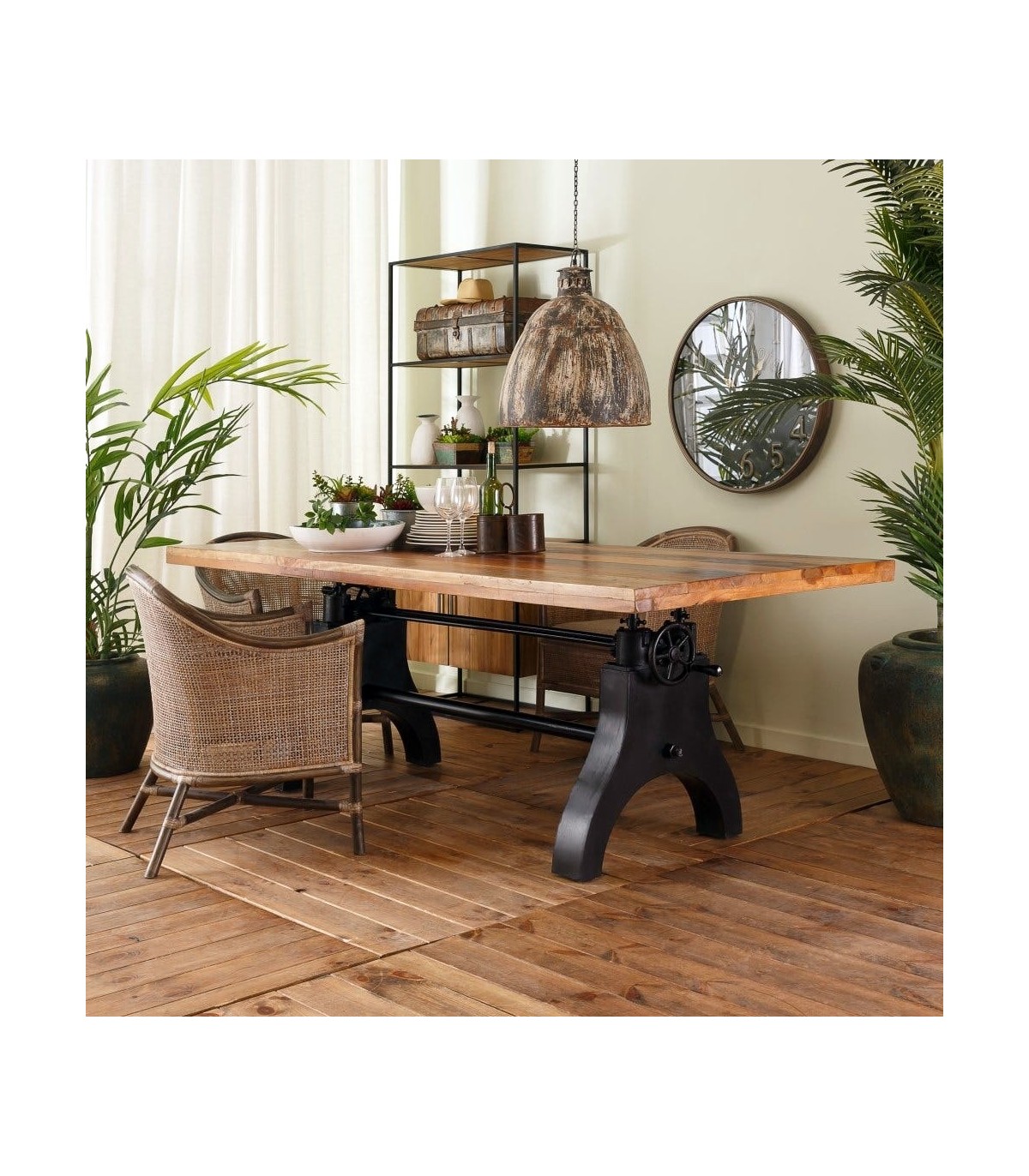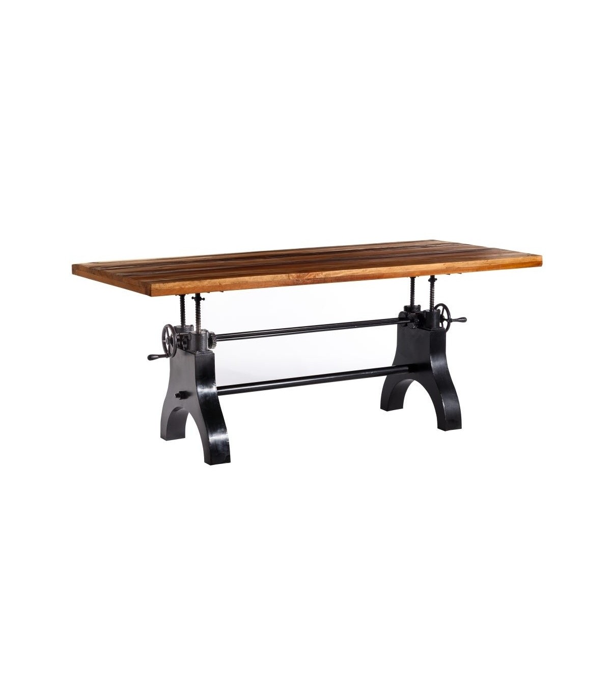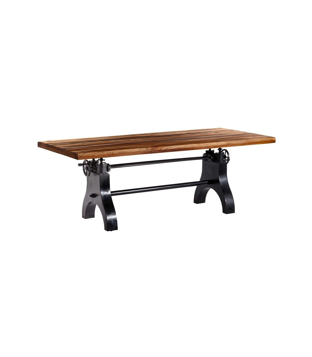 • Mesa de comedor rectangular fija, regulable en altura estilo industrial.