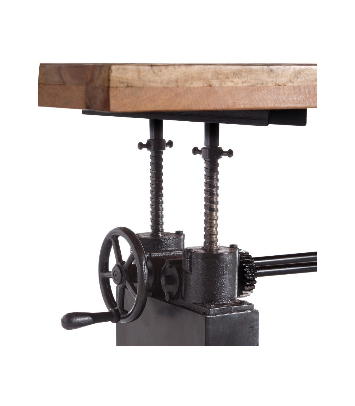 Mesa industrial ideal se regula la altura lo que la hace muy versátil, el diseño industrial es innegable, una mesa muy bonita y equilibrada.