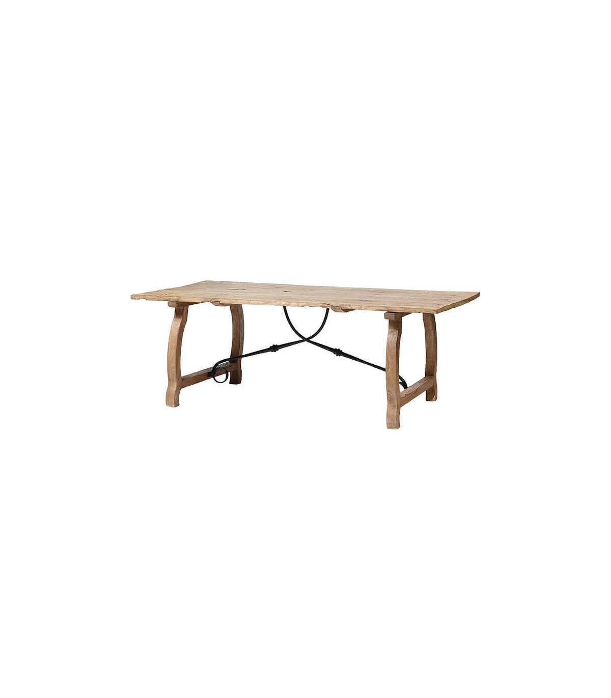 • Material, madera maciza de olmo, estructura hierro forjado.