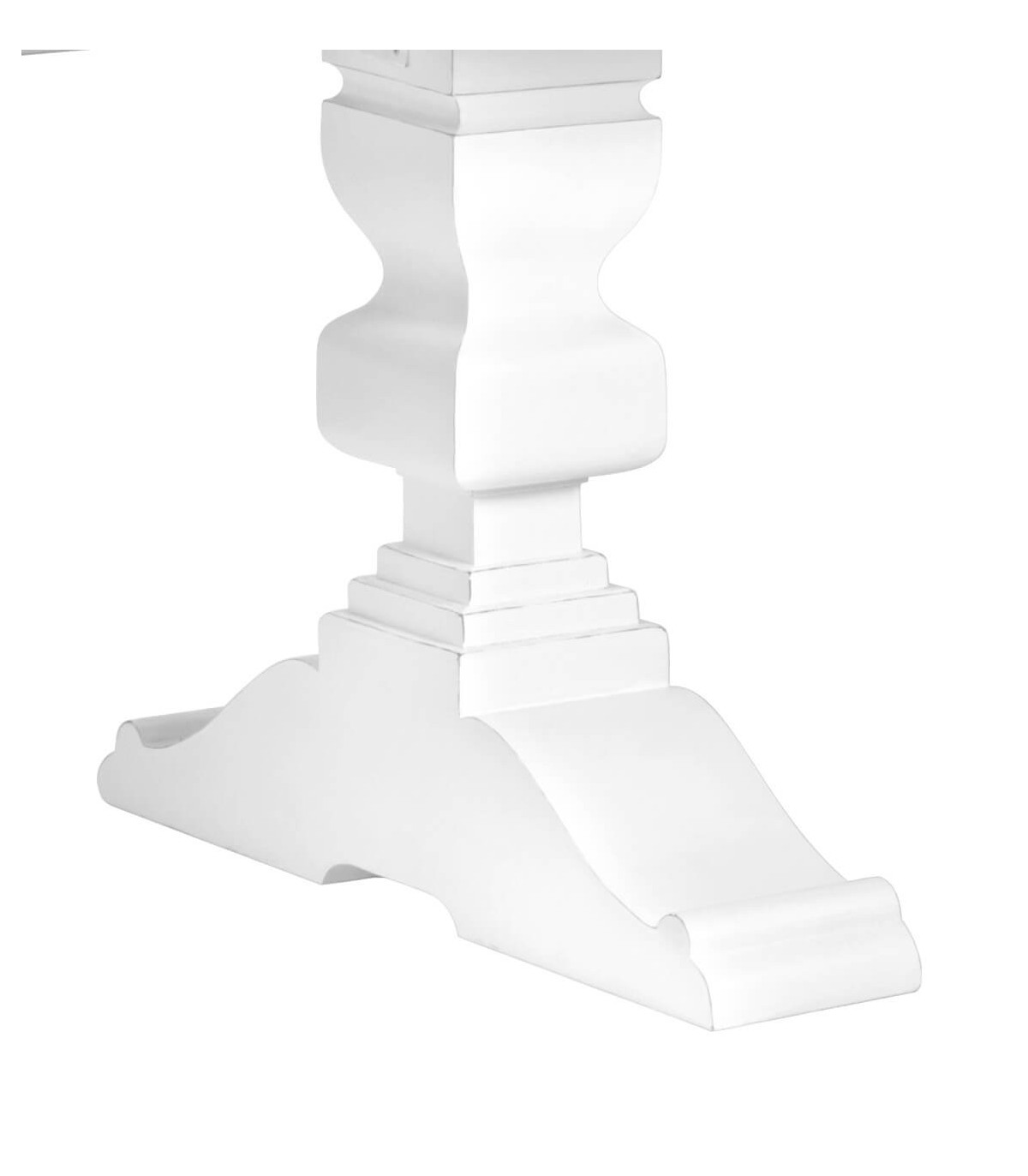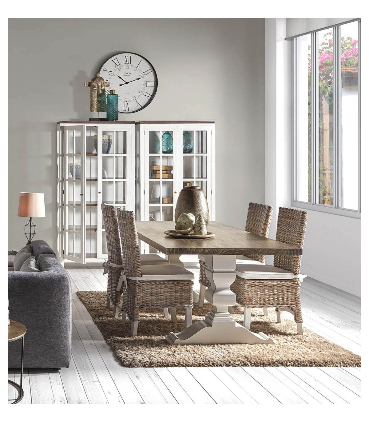Mesa de comedor de nuestra colección Everest, una colección realizada en madera maciza de caoba lacada en blanco con los tiradores en bronce, algún modelo está combinado con la madera de caoba en su color, un mueble a temporal que encajará perfectamente en cualquier tipo de decoración, como mueble singular o conjuntadolo con muebles de la colección.