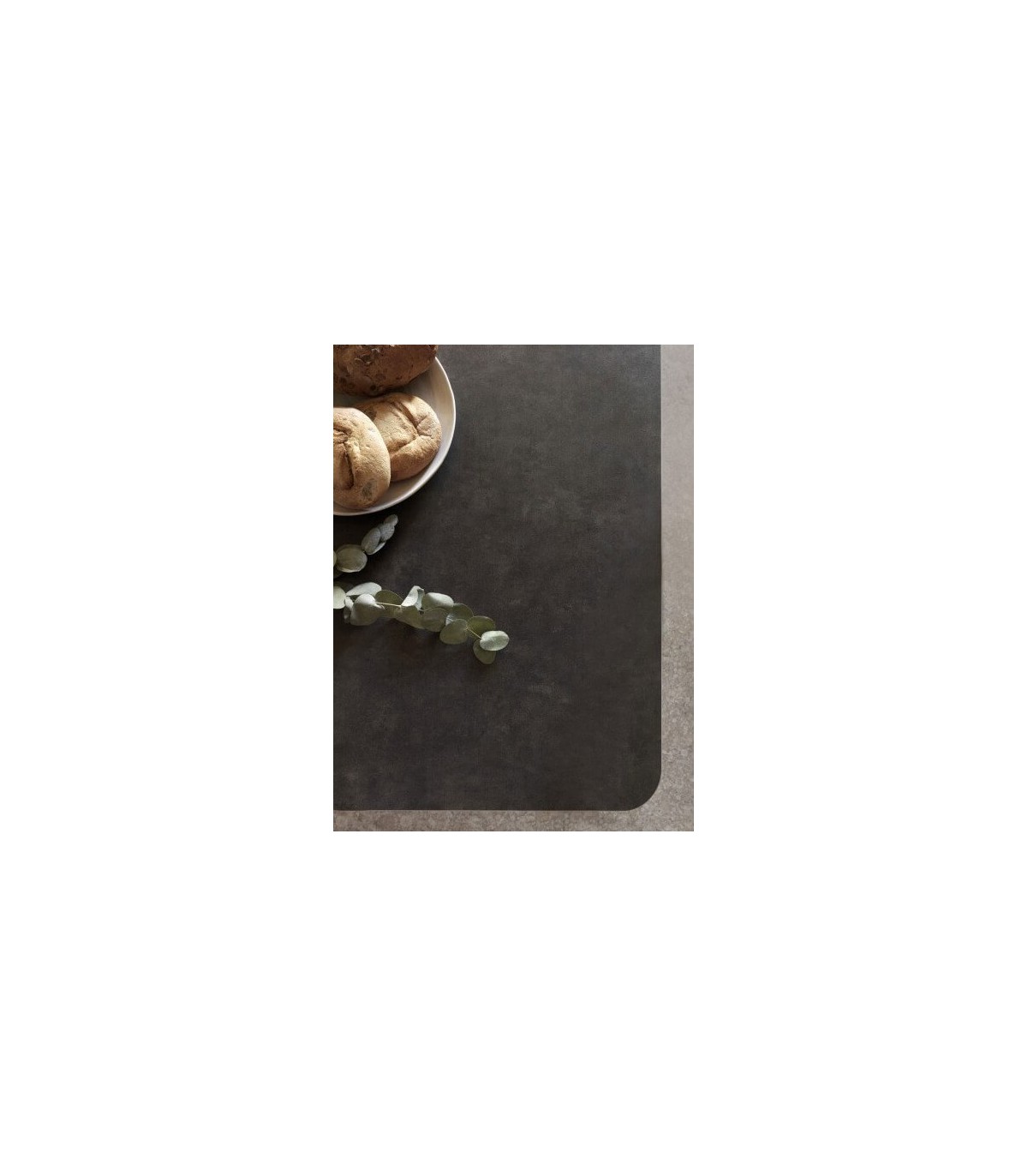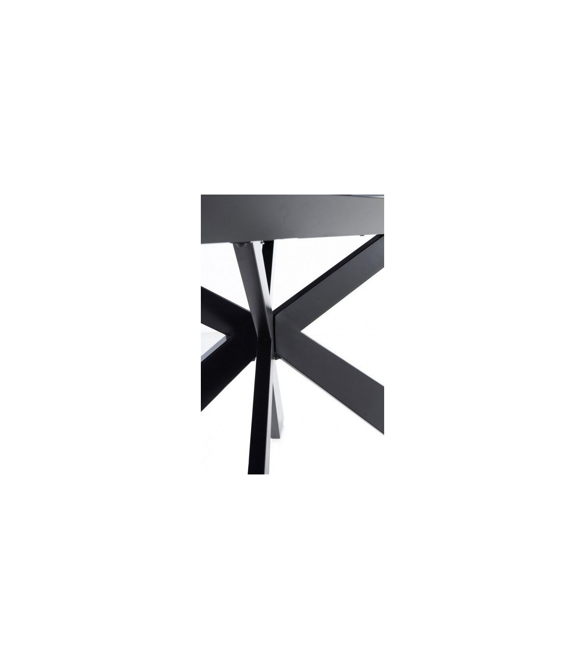 Mesa de comedor rectangular extensible pata de metal lacada en negro, tapa de cerámica imitando mármol negro. Una mesa fuerte y práctica con un marcado estilo industrial.