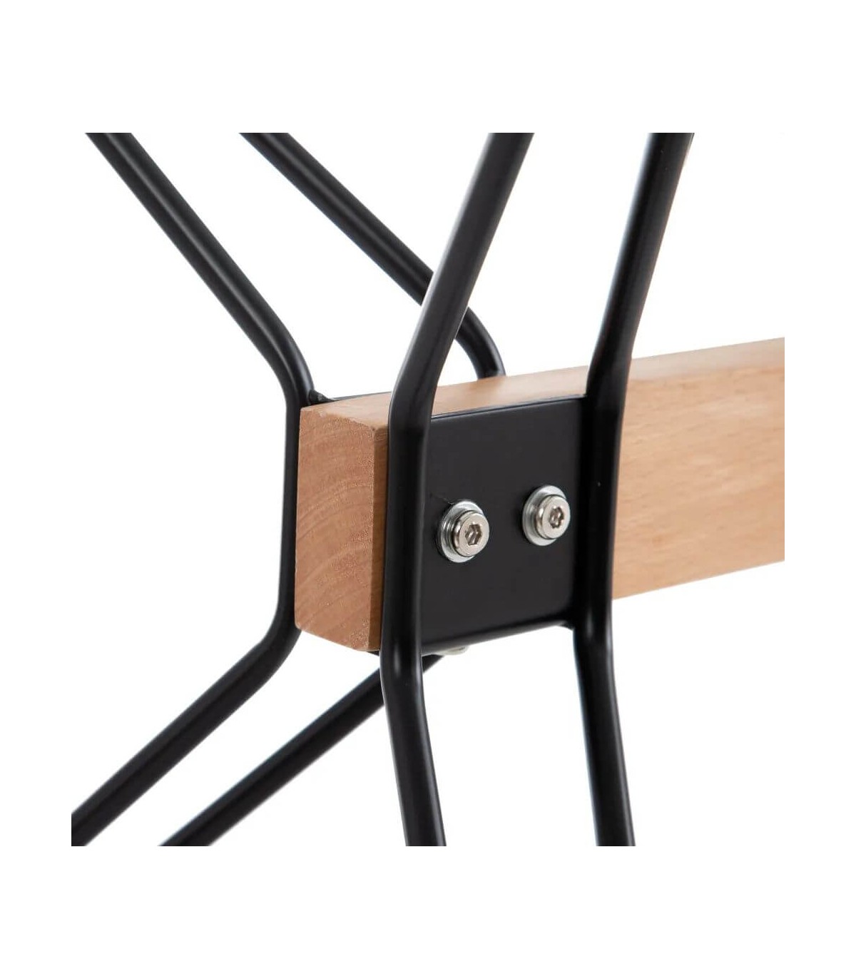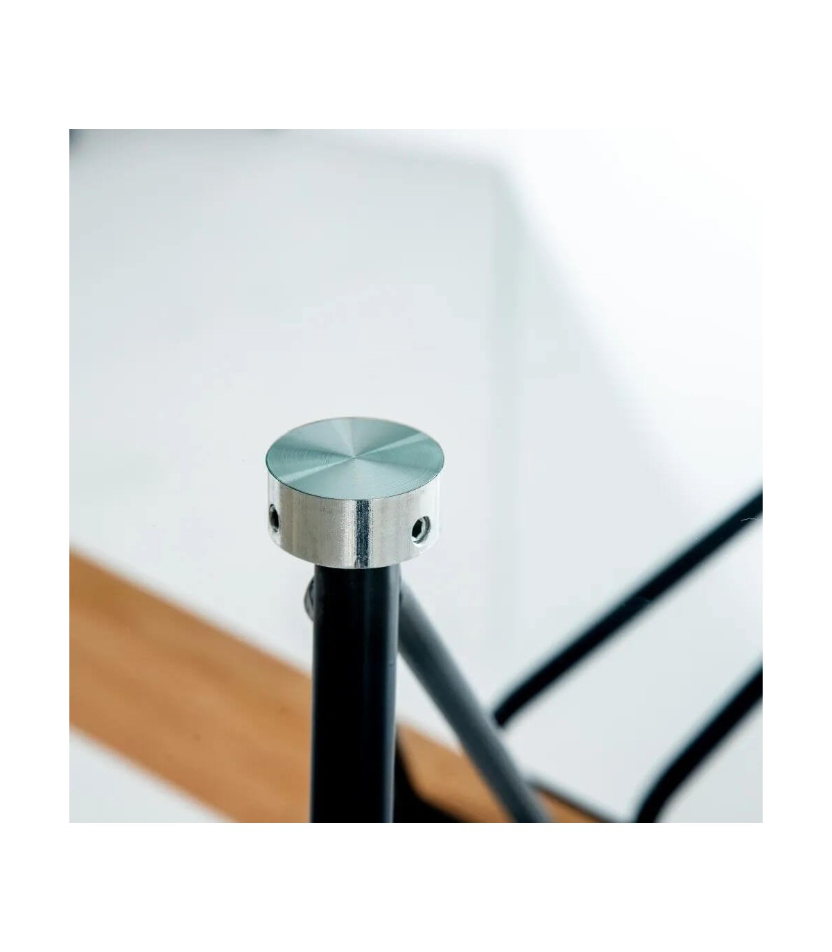 Material, metal hierro, madera de haya y cristal templado de 8 mm.