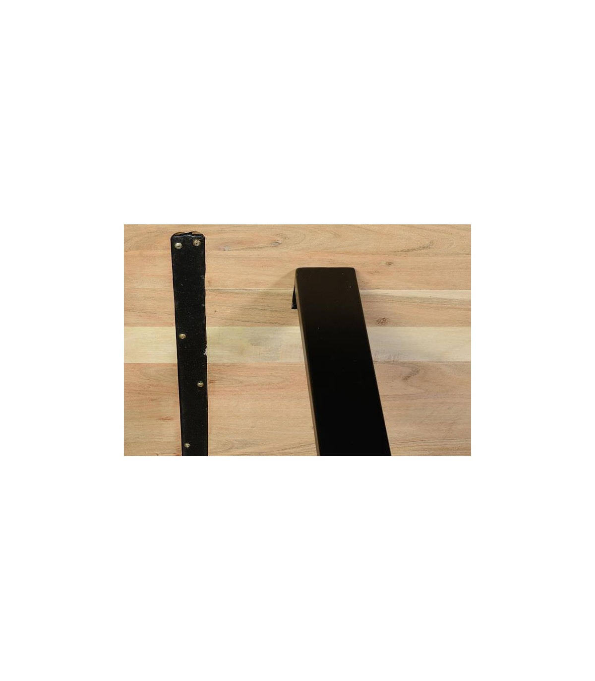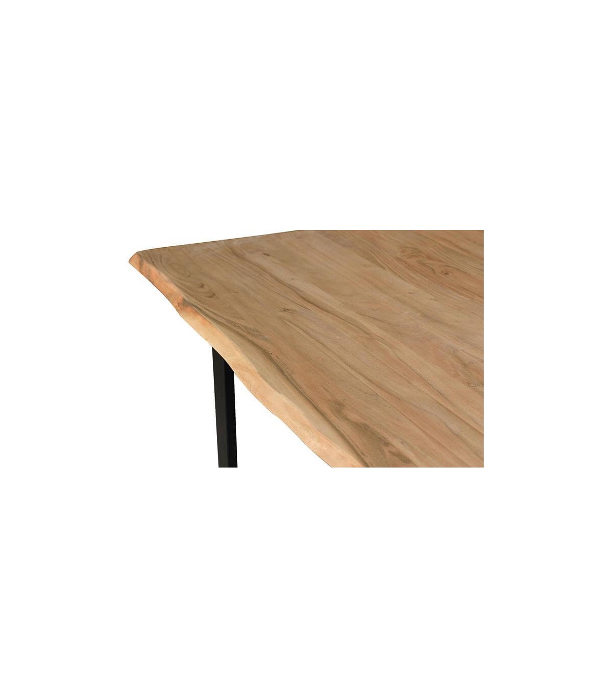 Acabado, tapa con bordes irregulares realizada en madera de acacia natural, patas en metal color negro. Fabricación artesanal. entendemos las variaciones de tonalidad, tamaño y forma o ciertas imperfecciones (grietas, nudos, marcas) como un valor añadido que la convierten en pieza única.