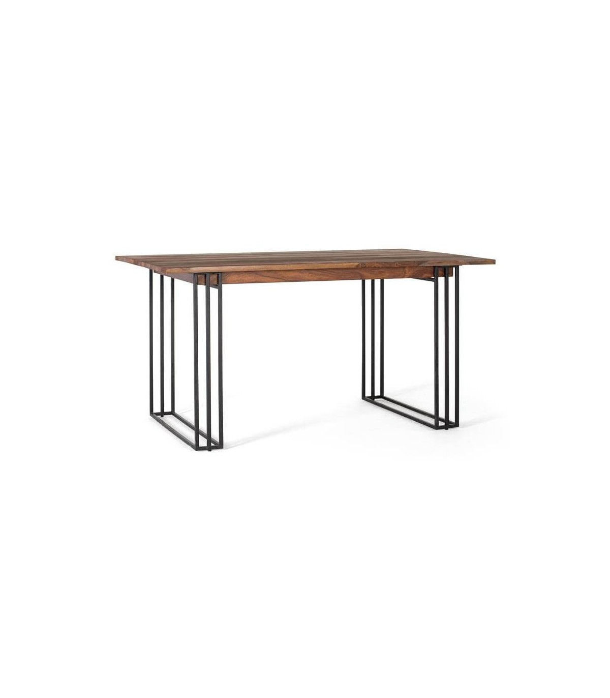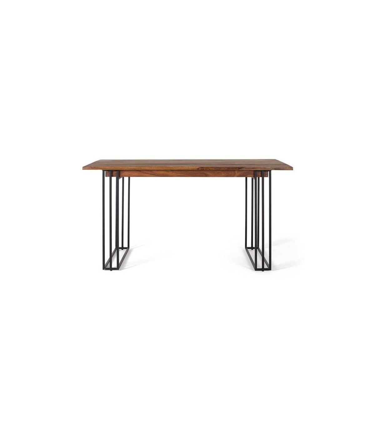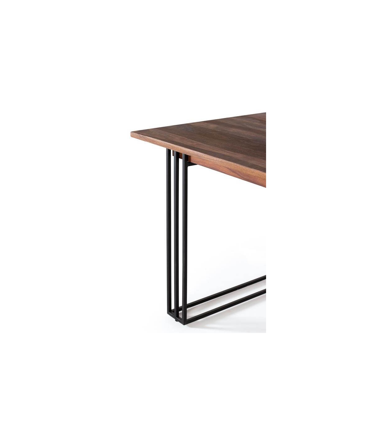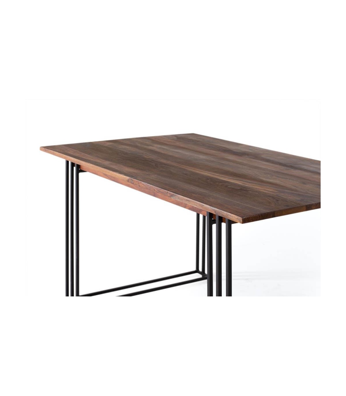 Mesa de comedor de estilo industrial, realizada en madera de palisandro natural con la belleza de su veta en estado natural y una base en metal muy cuidada en cuanto al acabado de las soldaduras, perfecta para un buen comedor.